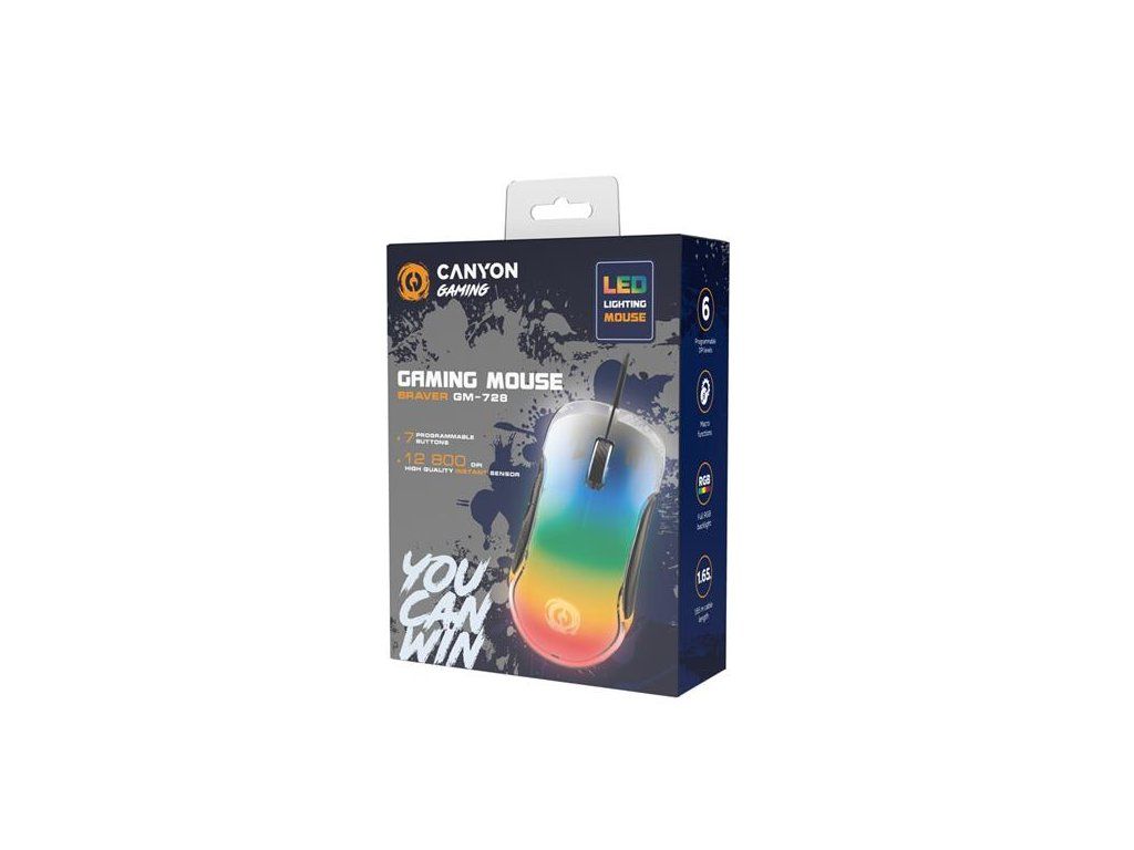 Canyon Braver, GM-728 herná myš, drôtová, optická, 800 - 12800 dpi, 7 program. tlač, LED podsv., kryštálová CND-SGM728