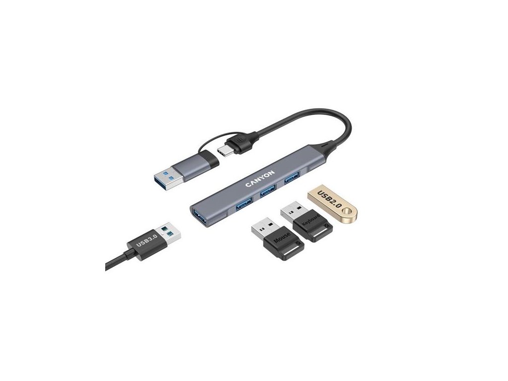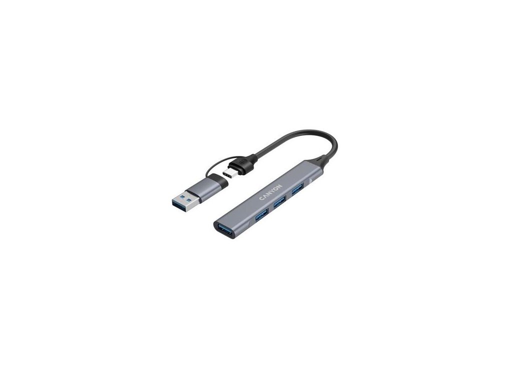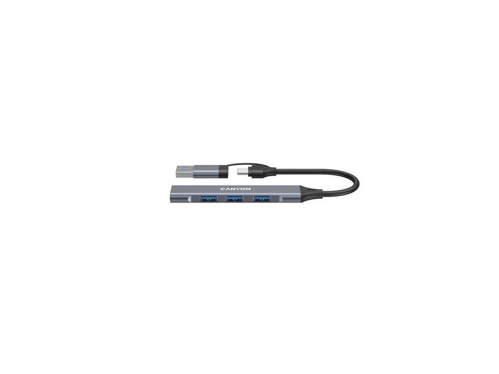 Canyon DS-02, USB-C Hub, 4 porty, 3xUSB 2.0 480Mbps, 1xUSB 3.0, 5Gbps, USB-C/USB-A adaptér, šedá CNS-TDS02G