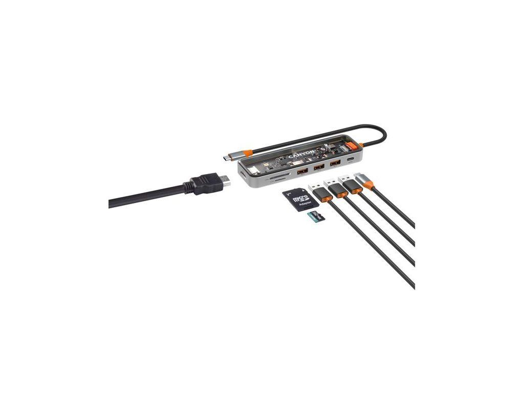 Canyon DS-13, Multiport Docking Station, 7 portov, 1xUSB-C 100W, 3xUSB 3.0, 1xHDMI 4K, čítačka kariet SD/micro SD CNS-TDS13