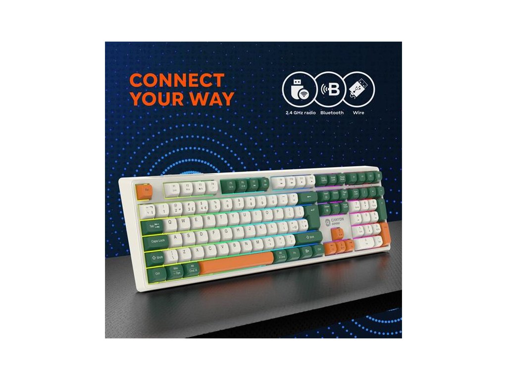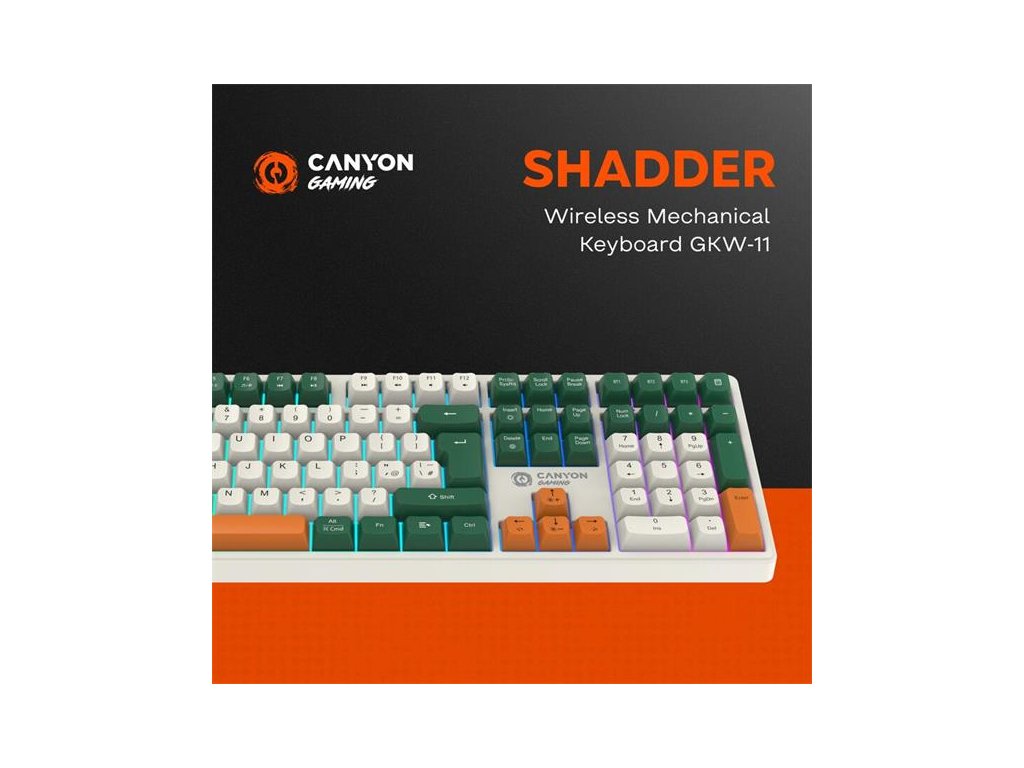 Canyon GKW-11, Shadder, 3v1 bezdrôtová herná klávesnica, lineárna, mech. spínače, tichá, 19 režimov podsvietenia, CZ/SK CND-SKBW11-CS