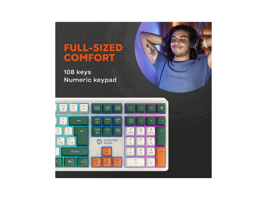 Či už hráte doma alebo na cestách, naša klávesnica sa prispôsobí vášmu životnému štýlu. Neváhajte a prispôsobte si svoj herný zážitok vďaka živému RGB osvetleniu. Vyberte si z miliónov farieb a dynamických svetelných efektov a vytvorte si osobitú atmosféru, ktorá zodpovedá vášmu štýlu.