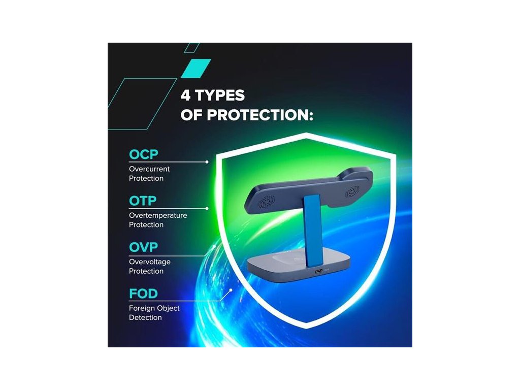 Bezpečnosť je štandardne zabezpečená 4 pokročilými ochranami (OCP, OVP, OTP, FOD), vďaka ktorým budete mať pokoj a istotu pri nabíjaní na plný výkon.