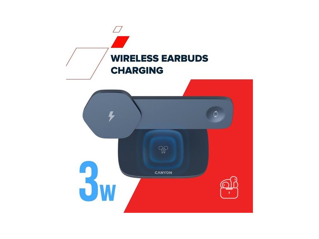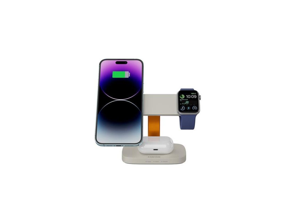 Canyon Hexagon 310, 3v1, bezdrôtová Qi nabíjacia stanica pre 3 zariadenia simultánne, svetlošedá/oranžová CNS-WCS310LGOR