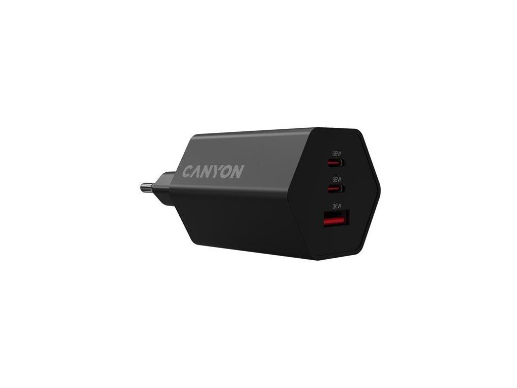 Canyon Hexagon 65, vysokorýchlostná univerzálna nabíjačka do steny, 65W, 2x USB-C + 1x USB-A, čierna CND-CHAHEX65B