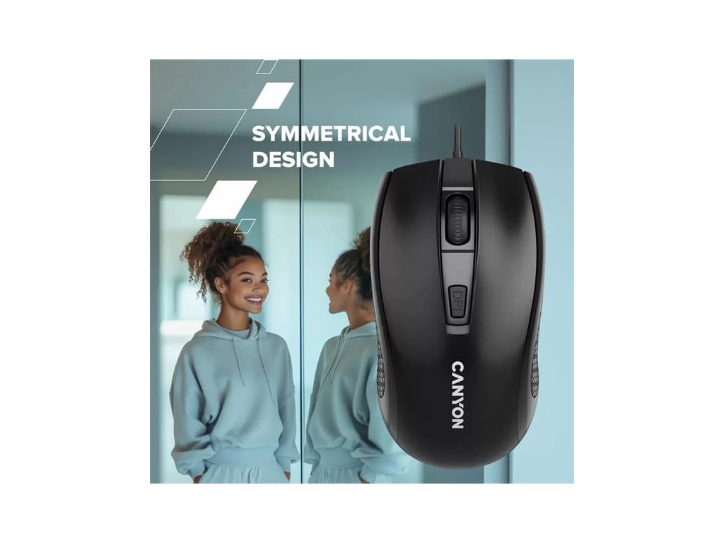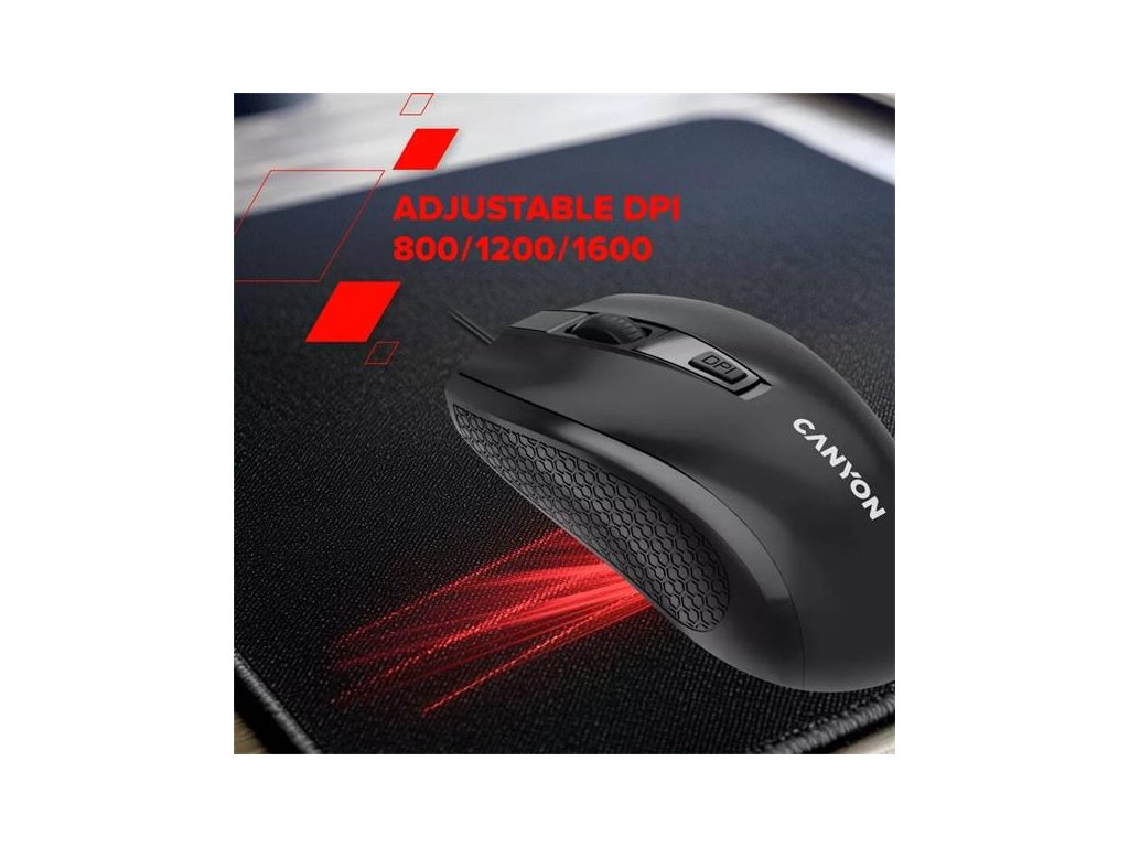 Canyon M-4, symetrická optická myš, USB, 1600 dpi, 4 tlačítka, čierna CNE-CMS4