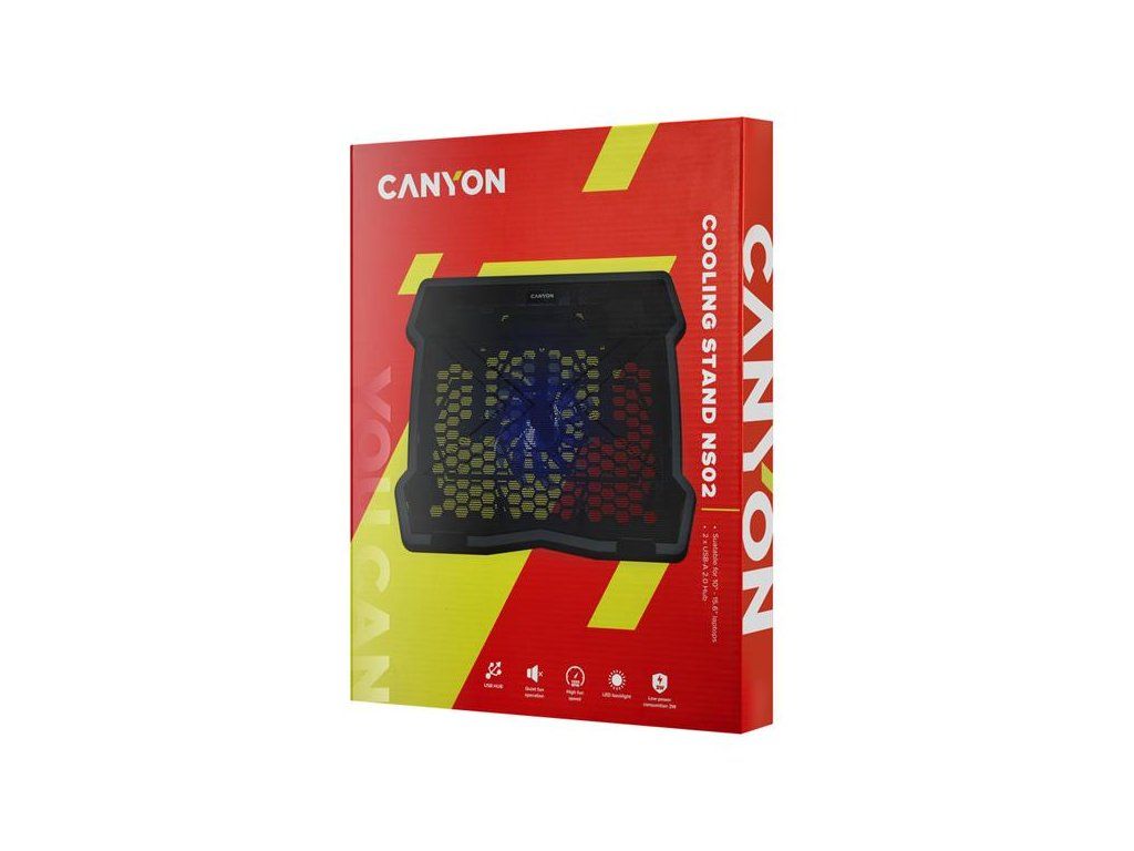 Canyon NS-02, chladiaci podstavec s ventilátorom pre notebook 10´´ - 15.6", LED podsvietenie, čierny CNE-HNS02