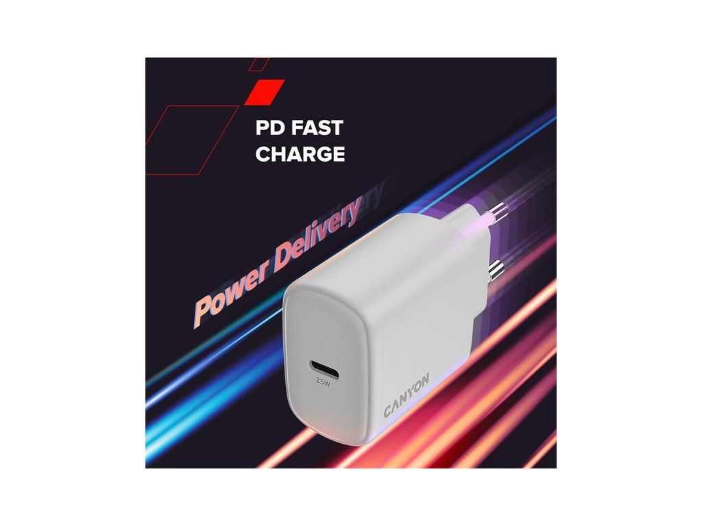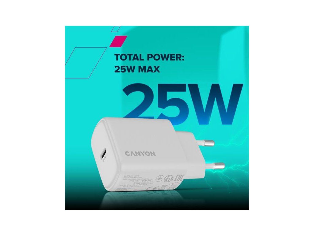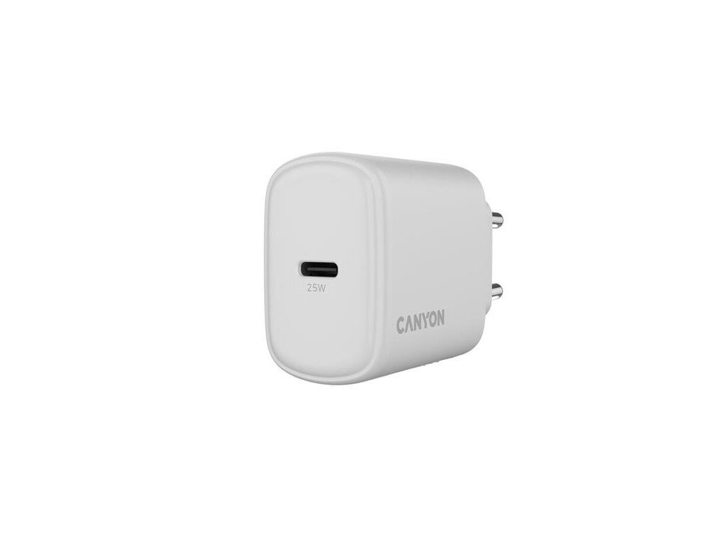 Canyon OnCharge 250, univerzálna nabíjačka do steny, 1x USB-C, PD 25W, biela CNE-CHA250-01