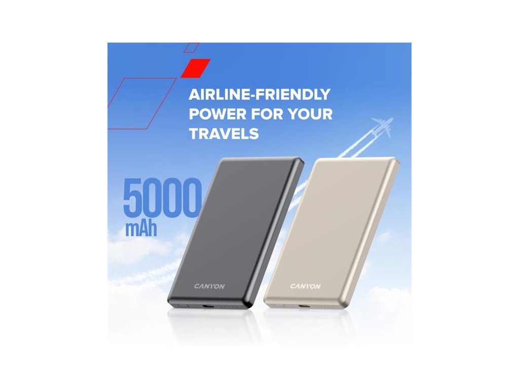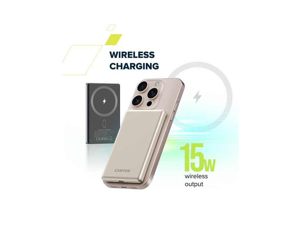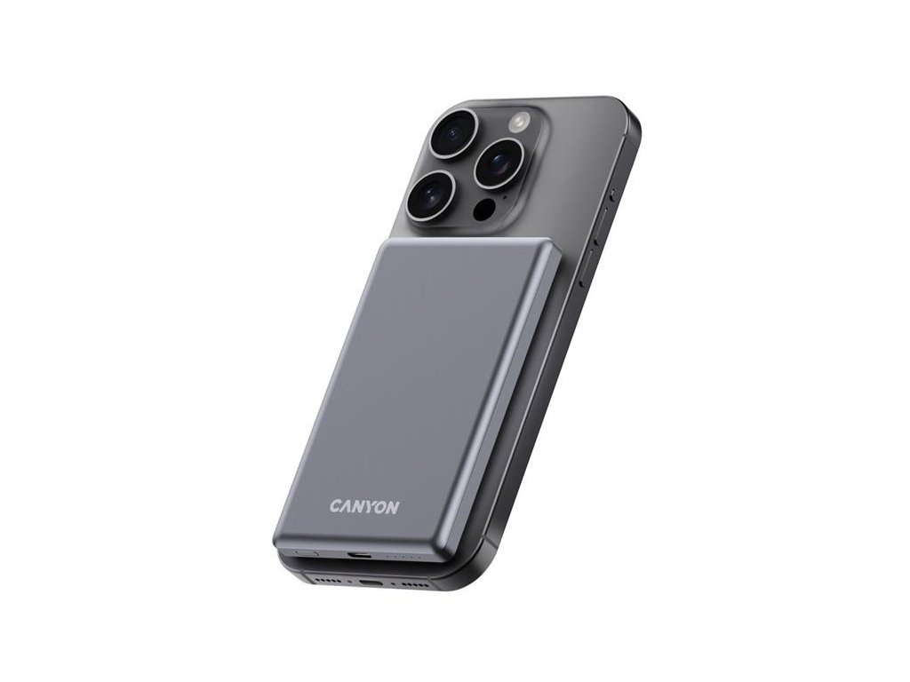 Canyon OnCharge 505, Powerbank, 5.000 mAh, in: USB-C, out: USB-C PD 20W + Wireless Magsafe 15W, ultratenká, šedá CNS-CPB505DG