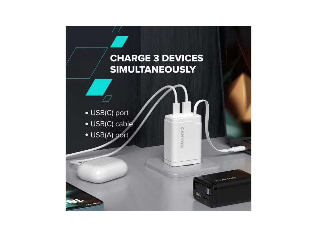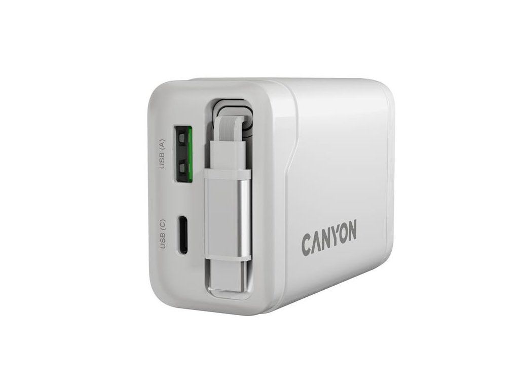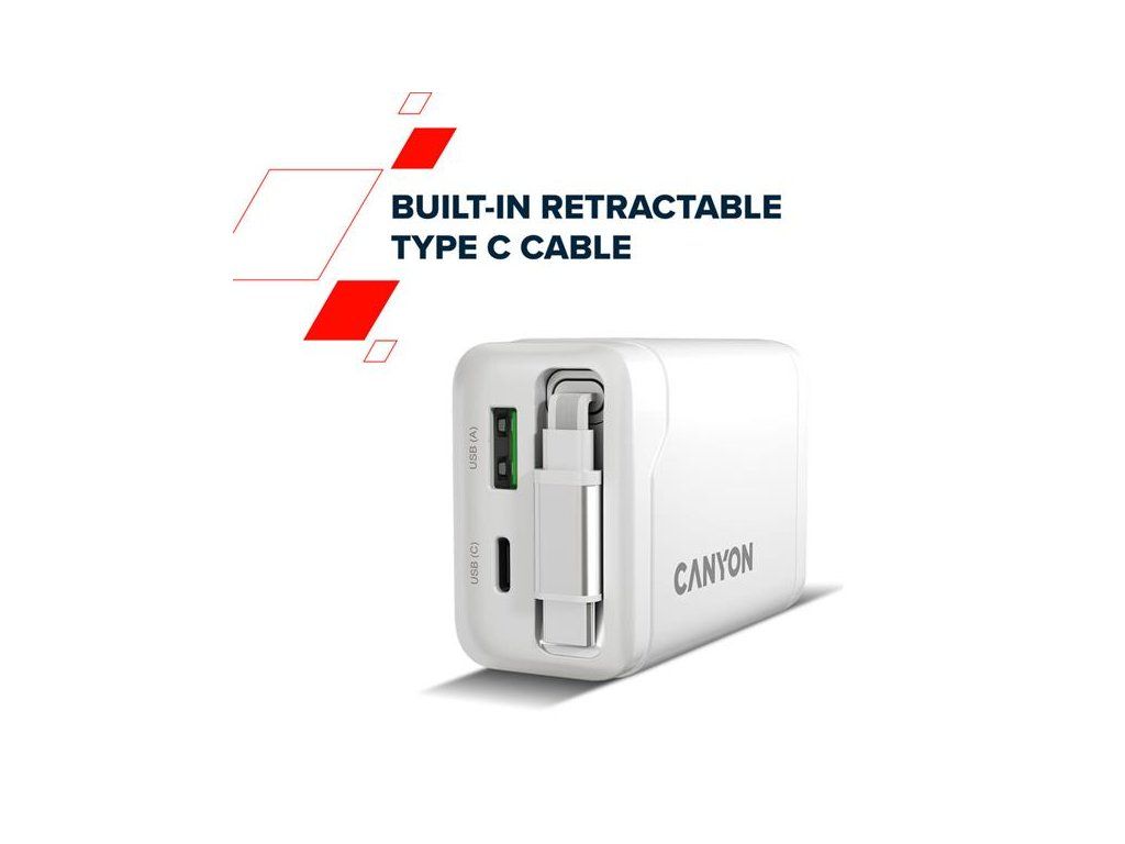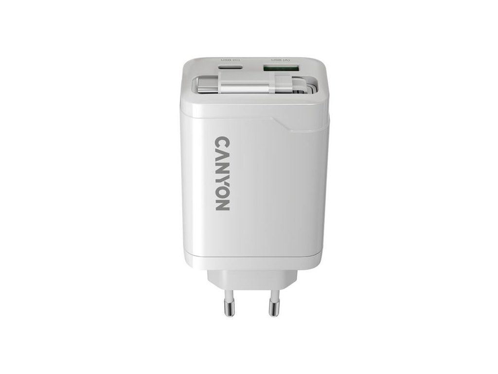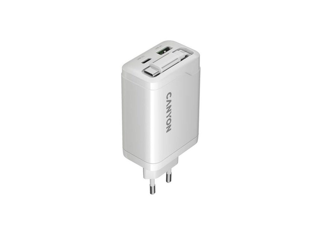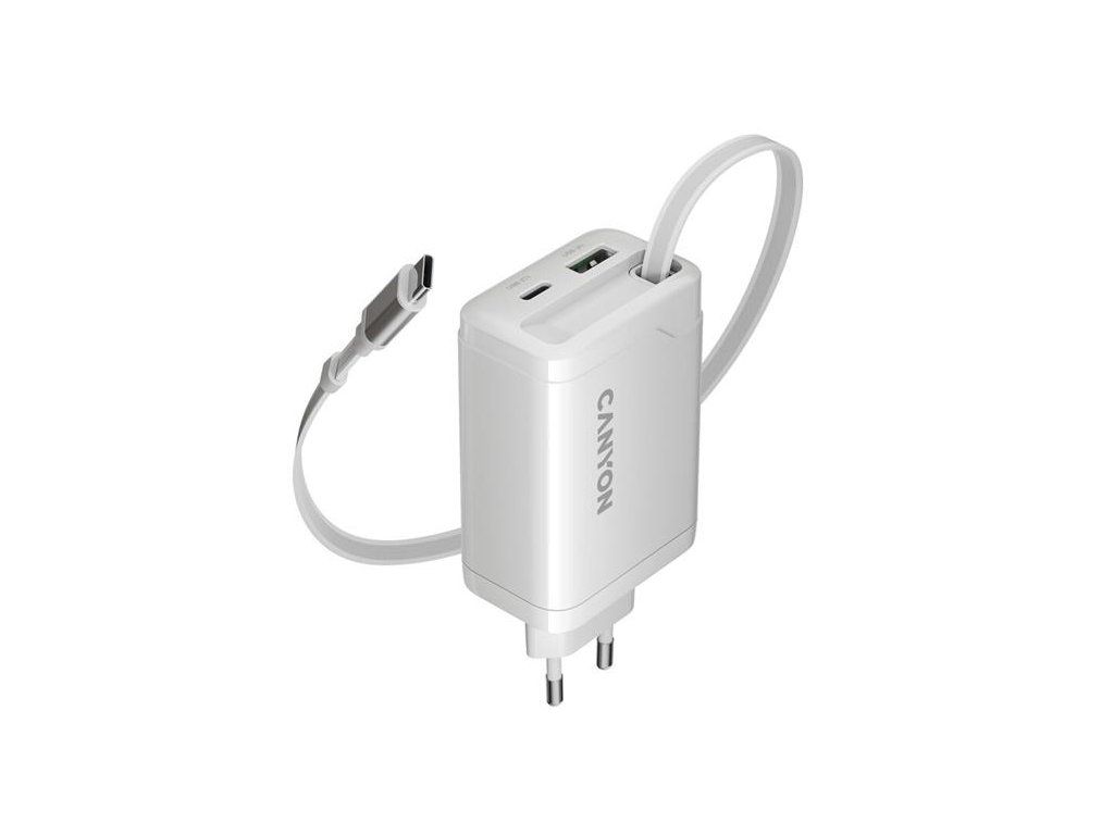 Canyon OnCharge 65RC, vysokorýchlostná univerzálna nabíjačka do steny s integrovaným 68 cm USB(C) káblom, 65W, biela CNS-CURC65ACW