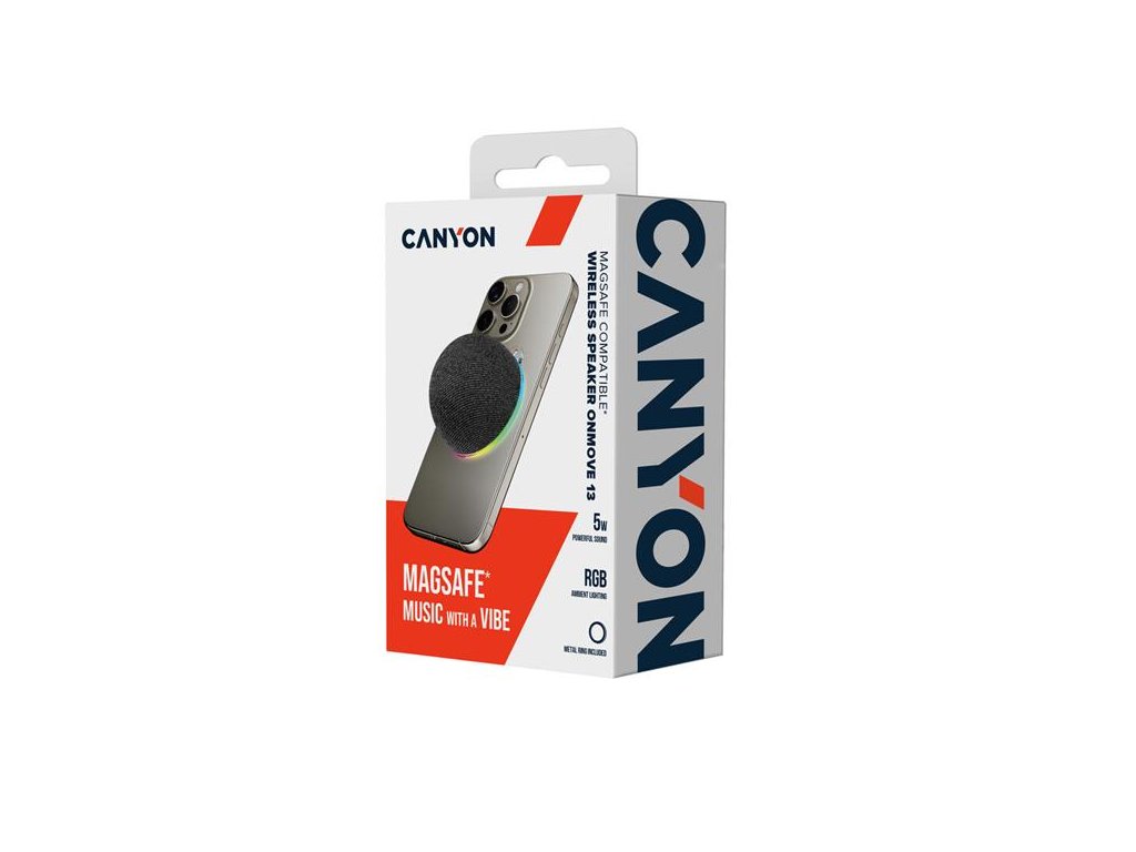 Canyon OnMove 13, prenosný Bluetooth reproduktor, Magsafe kompatibilný, 5W, 600mAh, USB-C nab., čierny CNE-CBTSP13B