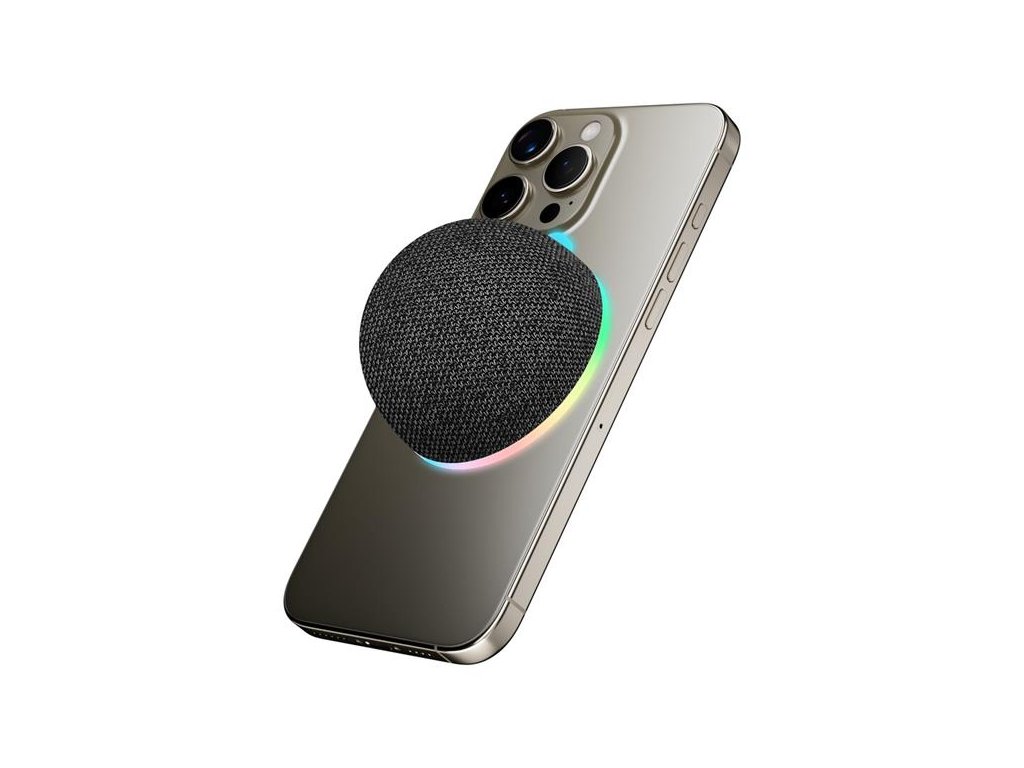 Reproduktor je vybavený magnetickou základňou, ktorá umožňuje bezpečné pripevnenie na kovové povrchy, ako sú police, stoly či skrinky, pre pohodlné umiestnenie bez držania – všade tam, kde potrebujete zvuk.