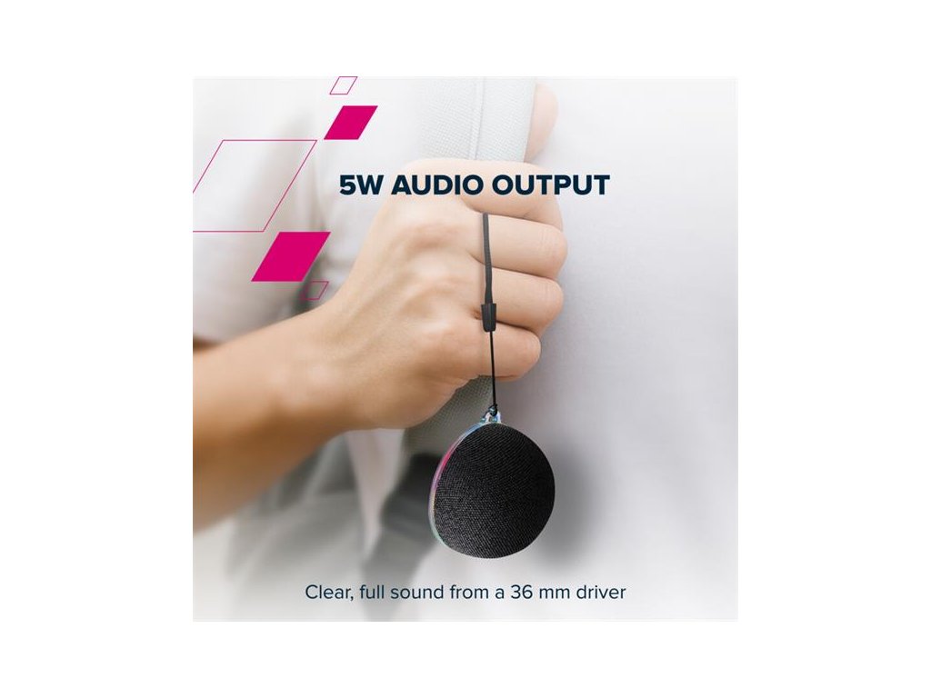 Prenosný Bluetooth reproduktorNapriek svojmu miniatúrnemu rozmeru reproduktor prináša silný zvukový výkon. Vďaka 5 W výstupu a 36 mm meniču dokáže OnMove 13 produkovať čistý, bohatý zvuk s prekvapivou hĺbkou – viac než dosť na zaplnenie osobného priestoru pohlcujúcim zvukom. A keď chcete zážitok posunúť ešte ďalej, funkcia TWS (True Wireless Stereo) umožňuje spárovať dve jednotky pre skutočné stereo rozloženie ľavý-pravý kanál, čím vytvoríte širšiu a dynamickejšiu zvukovú scénu ideálnu na filmy, hudbu či hry.