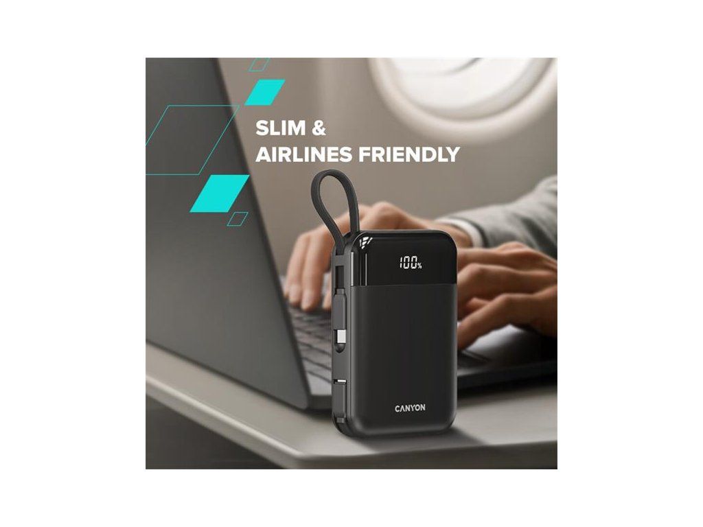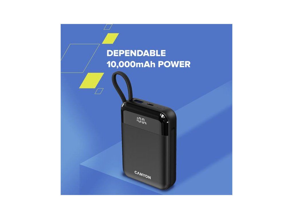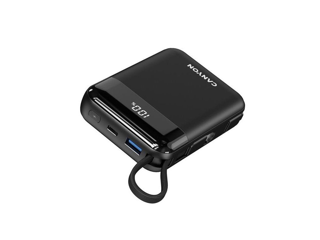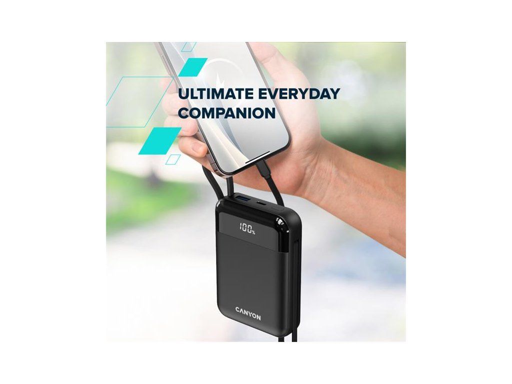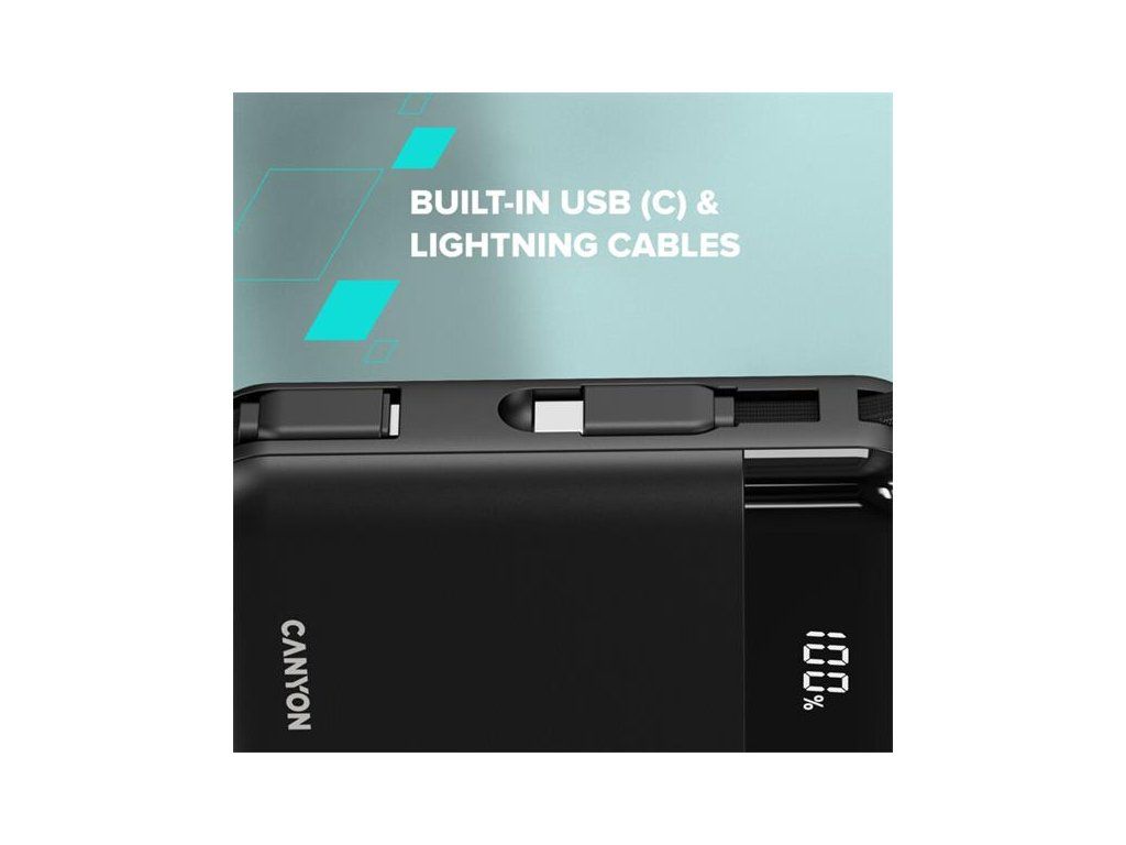 Canyon OnPower 104, powerbanka 10 000 mAh, 22.5 W, USB-C / USB-A, integrované káble USB-C + Lightning, čierna CNS-CPB104B