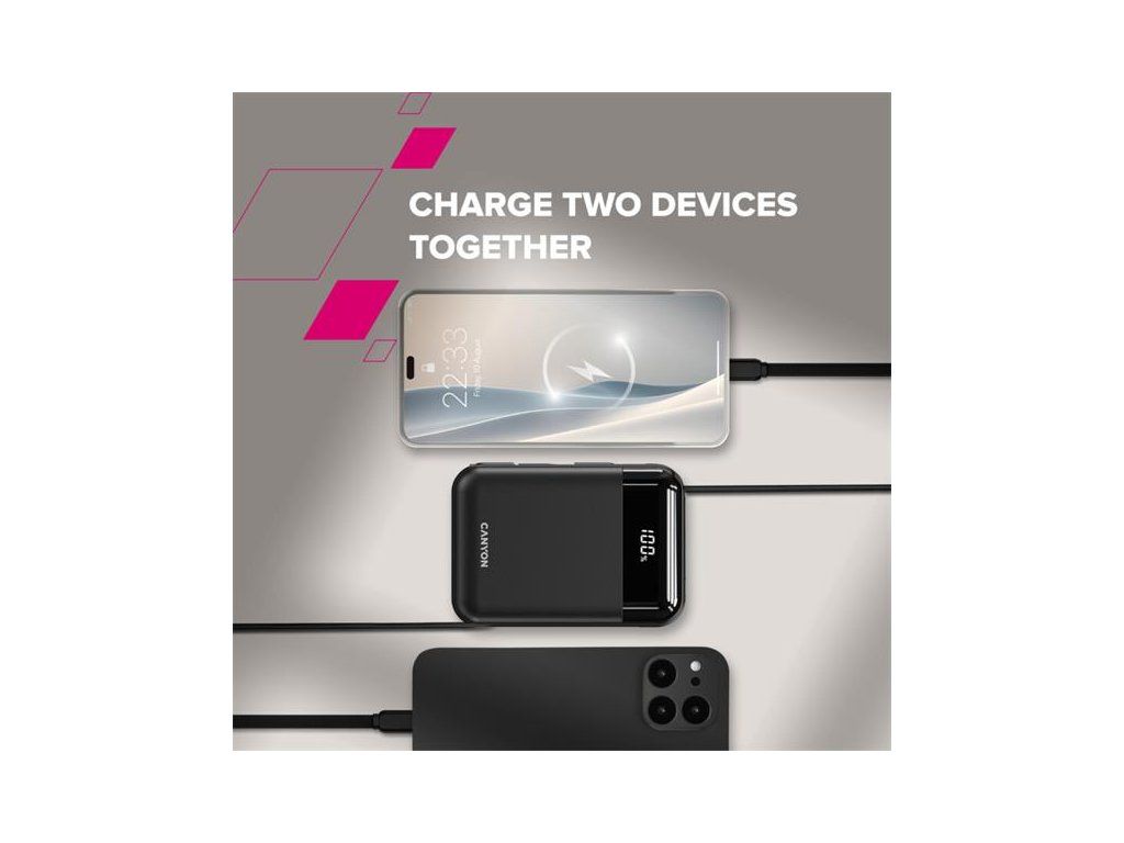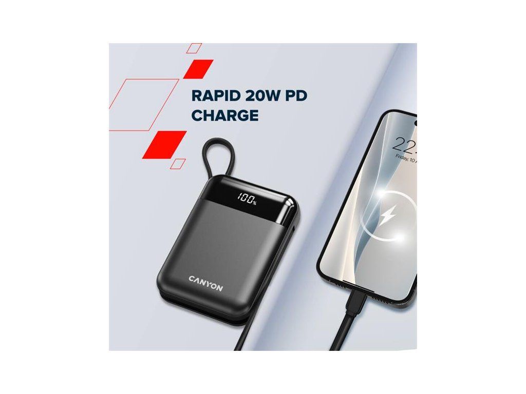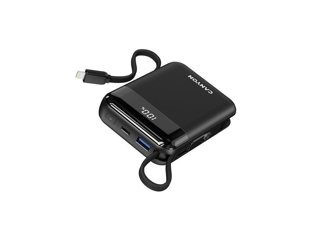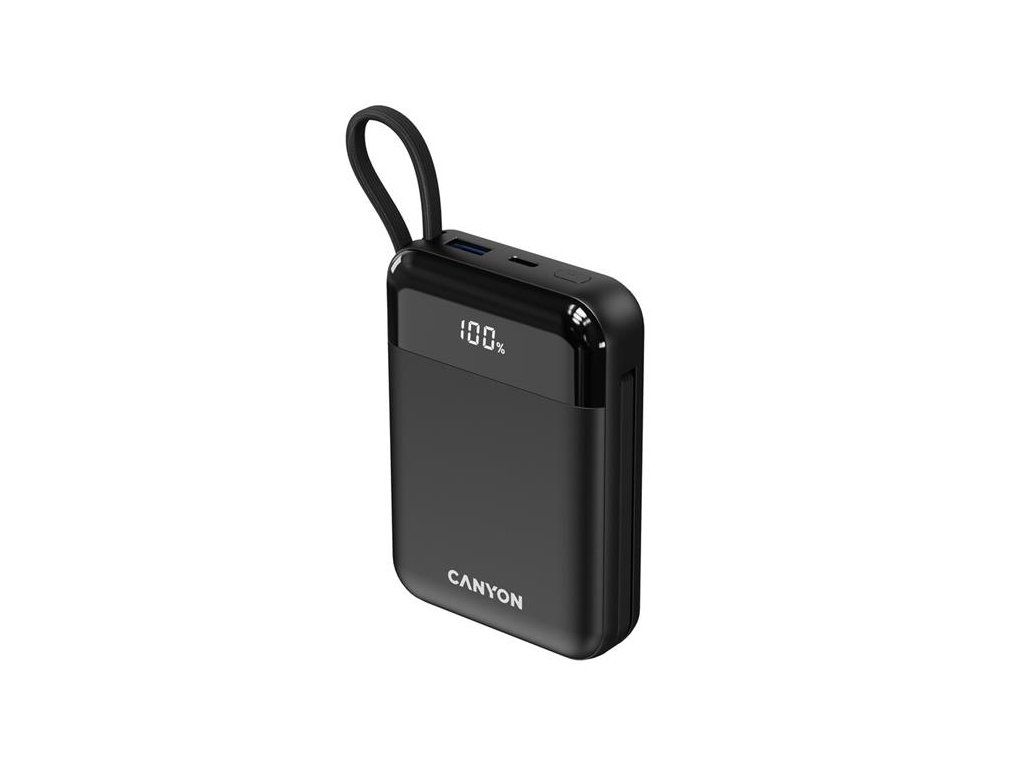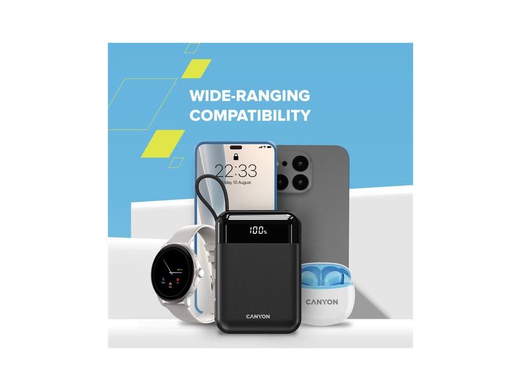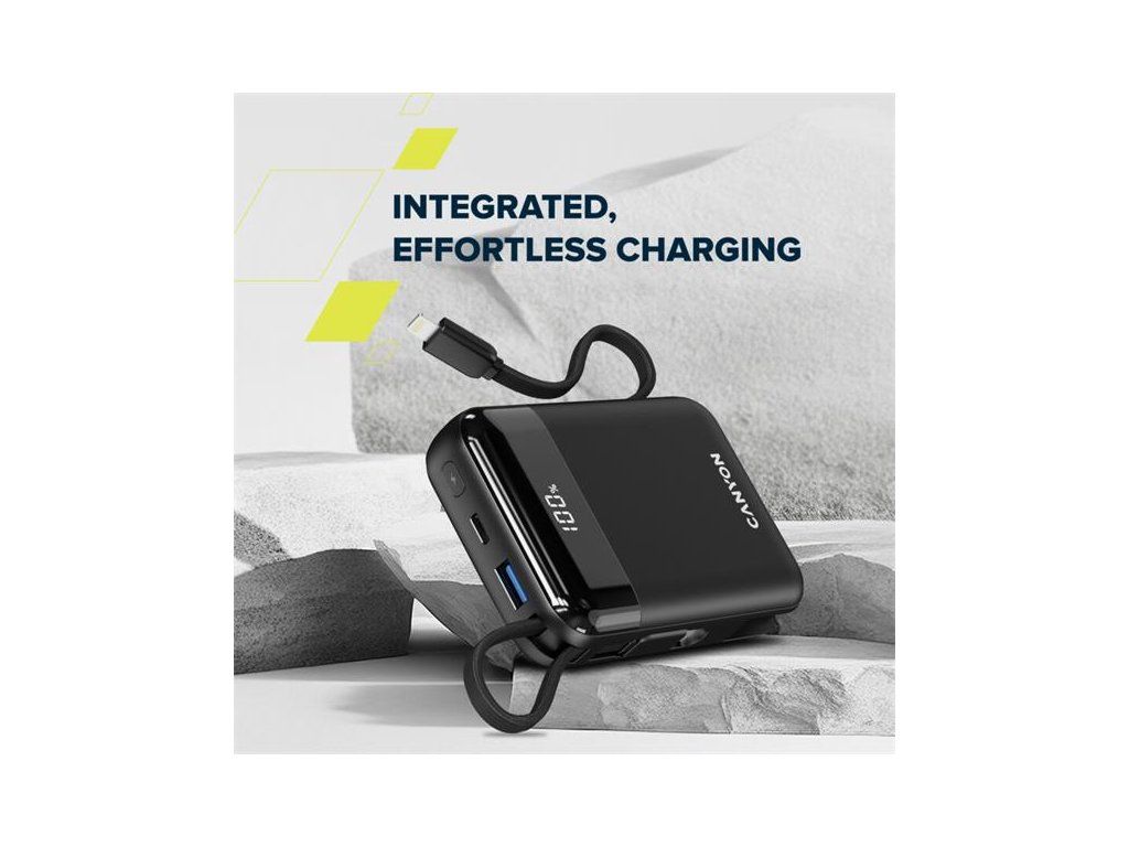 Canyon OnPower 104, powerbanka 10 000 mAh, 22.5 W, USB-C / USB-A, integrované káble USB-C + Lightning, čierna CNS-CPB104B