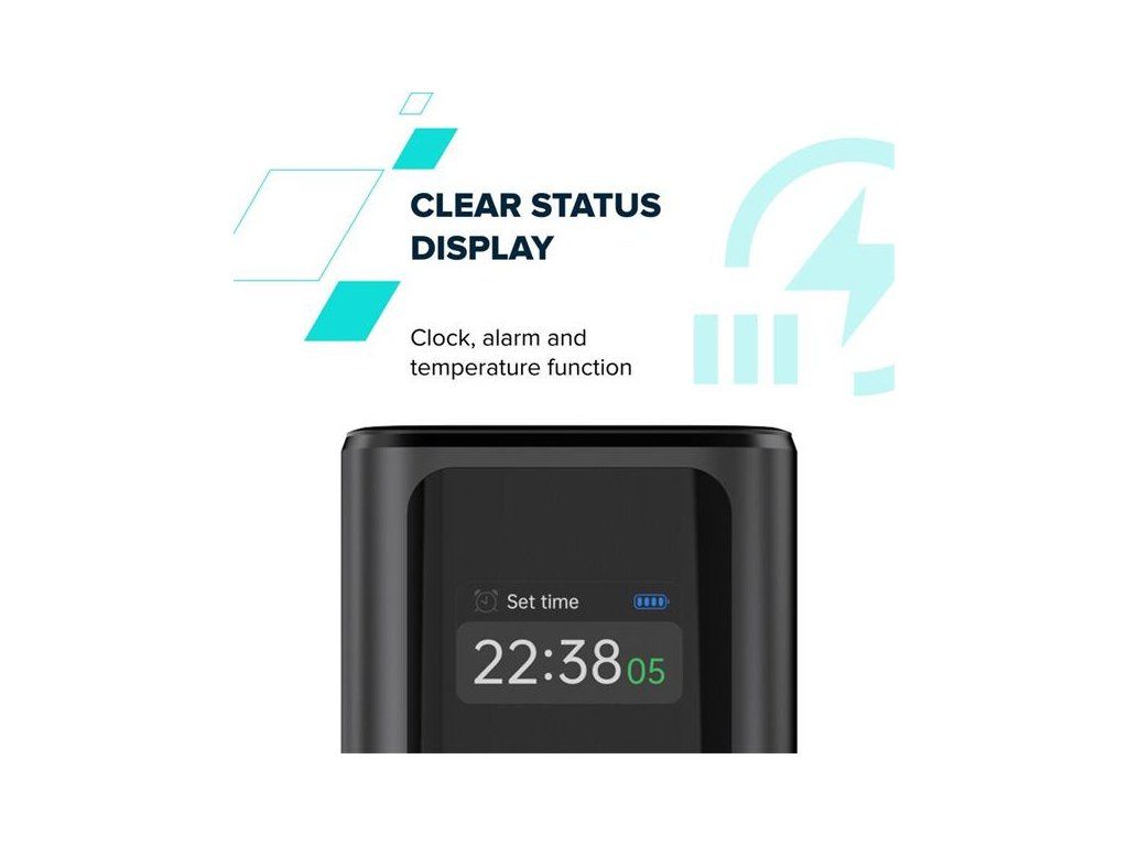 A teraz tá zábavná časť: táto powerbanka nielen nabíja, ale môže byť aj vaším budíkom, hodinami a dokonca aj mini meteostanicou so zabudovaným ukazovateľom teploty.