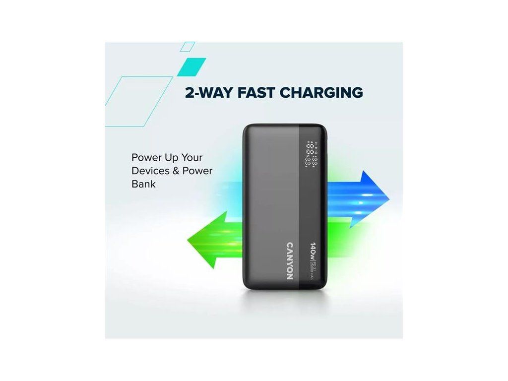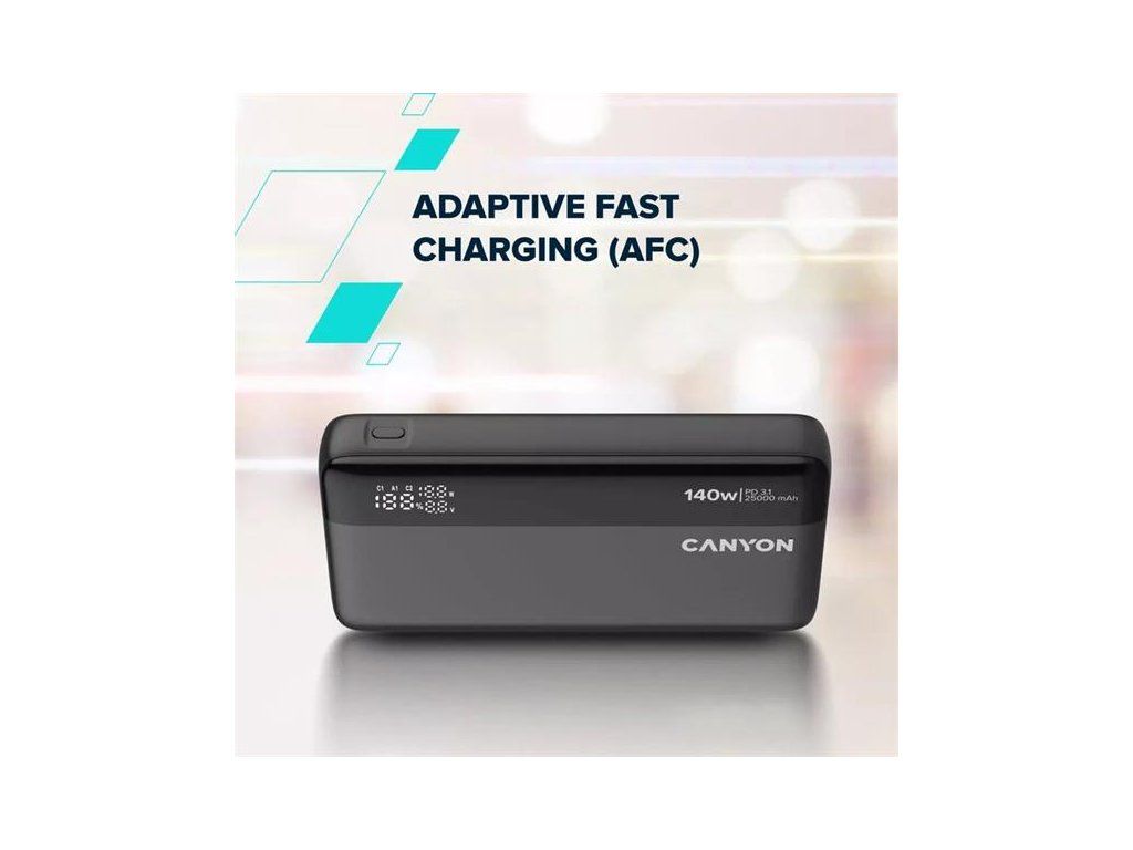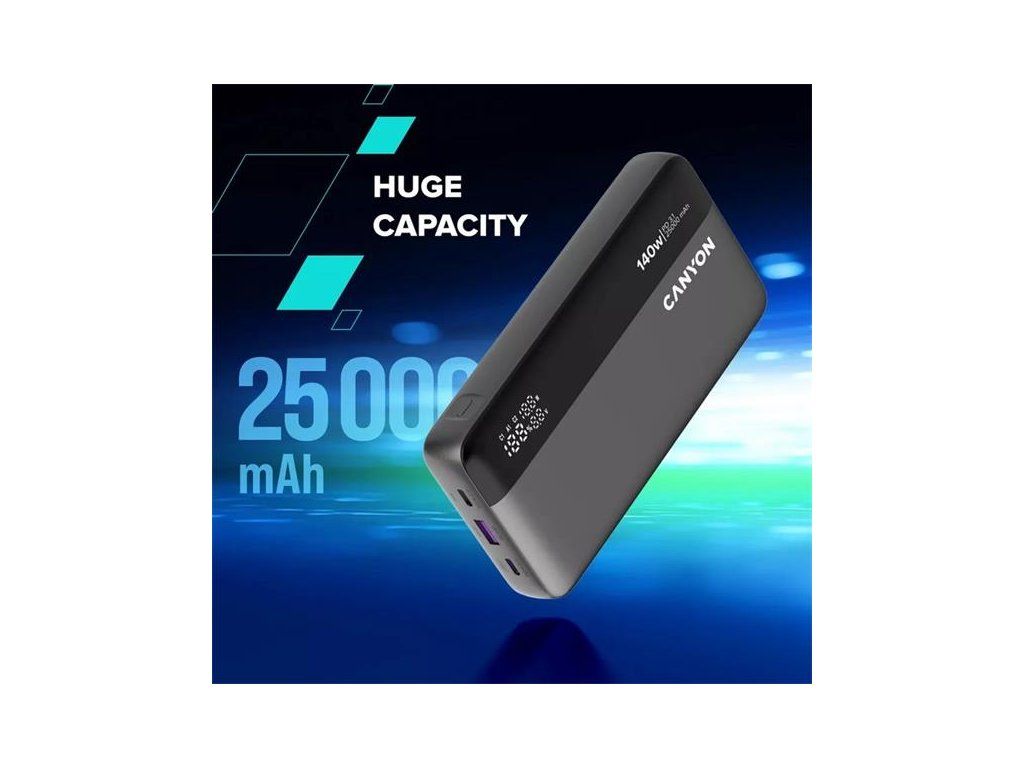 Canyon OnPower 240, Powerbank, 25.000 mAh, 140W ultra rýchla, displej, in: USB-C, out: USB-A, QC3.0/USB-C, PD 3.1, CNS-CPB240
