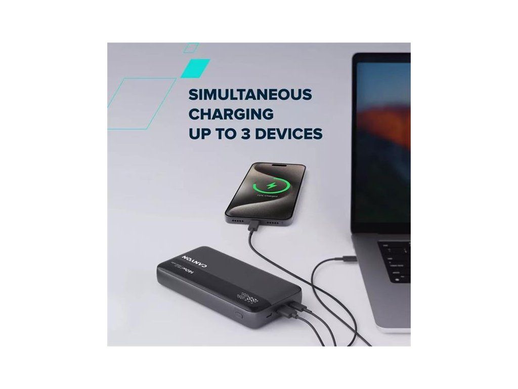 Je vybavená tromi portami a podporuje štandardy PD3.1, PPS, QC3.0, AFC a SCP, takže poskytuje optimalizovaný výkon každému zariadeniu, čím zabezpečuje účinnosť a kompatibilitu vo všetkých oblastiach. Jeho obrovská kapacita 25 000 mAh znamená, že máte zaistenú dlhodobú prevádzku: viacnásobné nabíjanie telefónu, predĺženú životnosť tabletu alebo dostatok energie na udržanie notebooku v chode, keď nie je v blízkosti žiadna zásuvka. A vďaka súčasnému nabíjaniu troch zariadení si už nikdy nebudete musieť vyberať, či chcete zostať pripojení, alebo sa deliť o energiu.