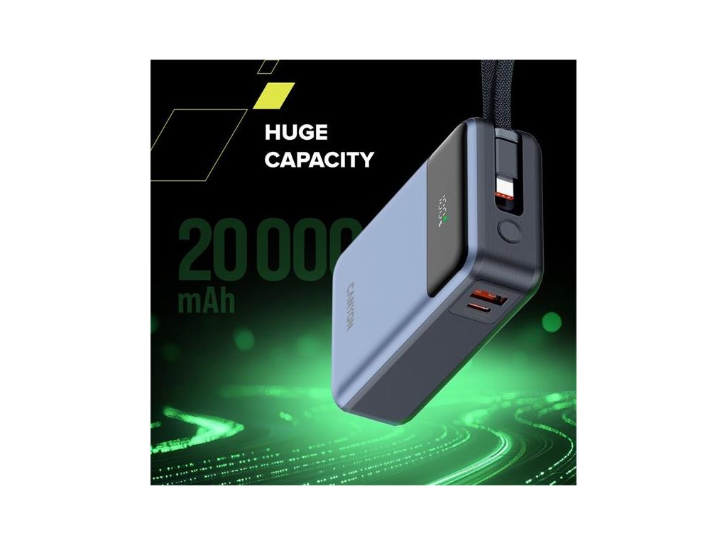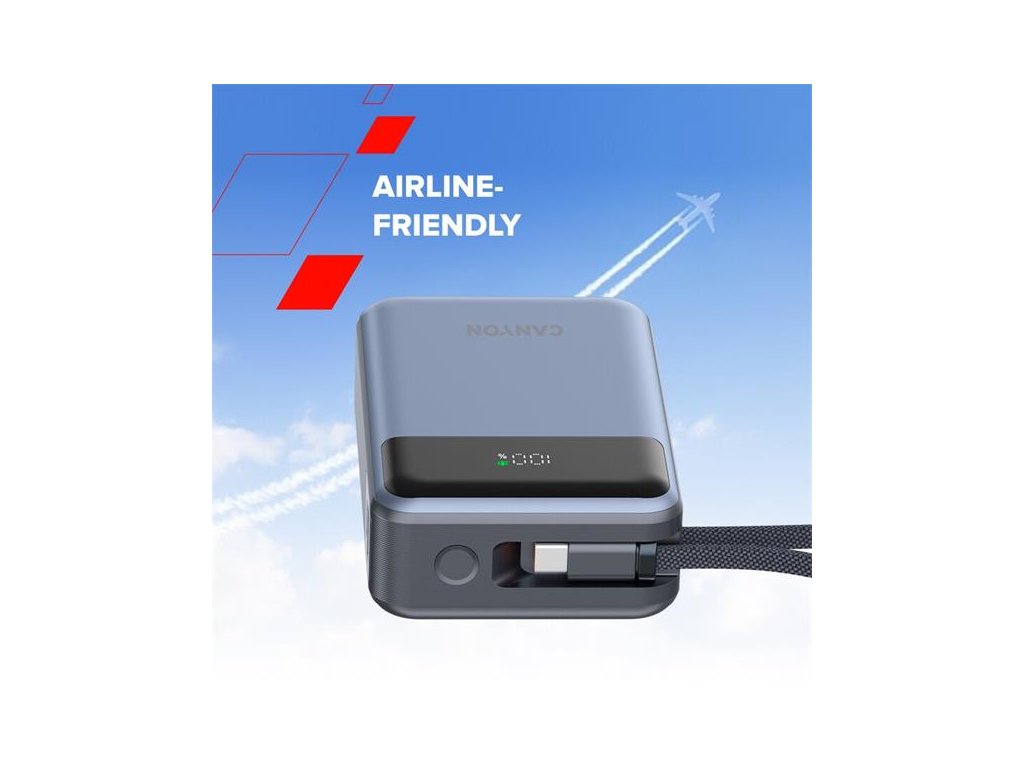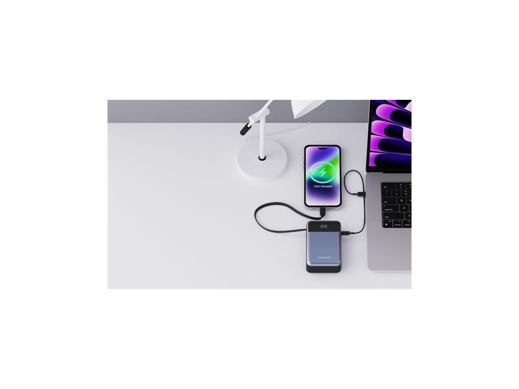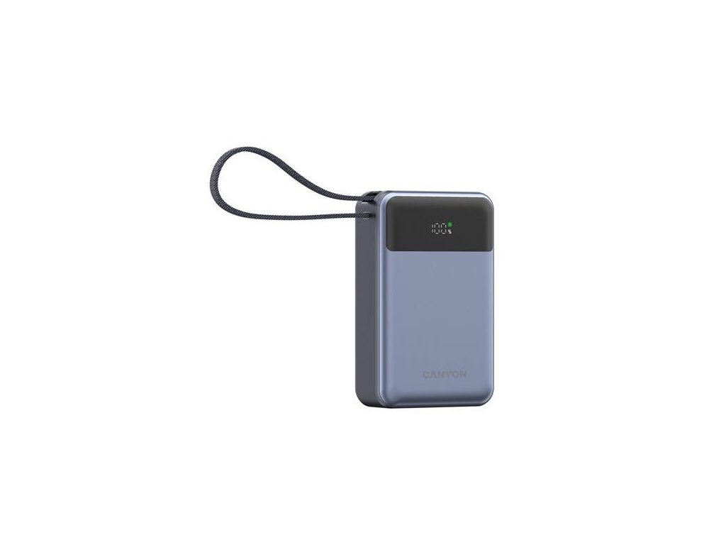 Canyon OnPower 600, Powerbank, 20.000 mAh, displej, in: USB-C, out: USB-C, PD 65W/ USB-A, QC3 22,5W, integr. kábel CNS-CPB600DG