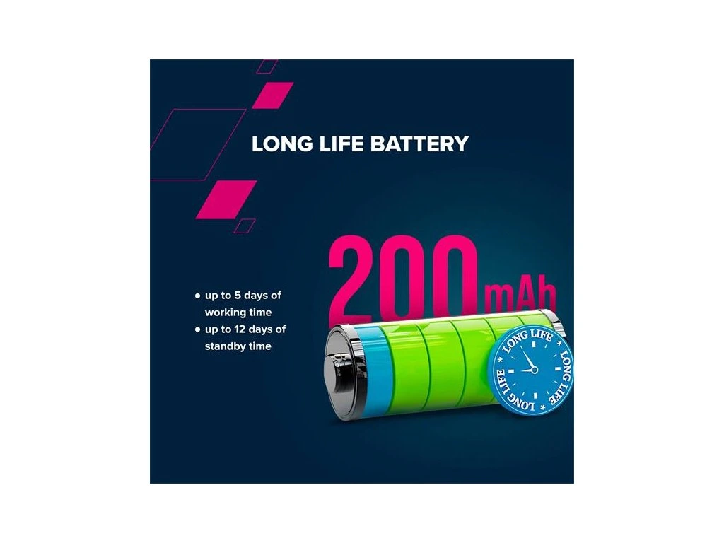 - vysoká kapacita batérie a dlhá výdrž v aktívnom režime až do 5 dní