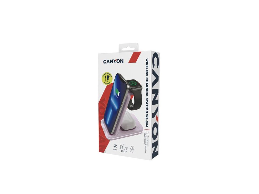 Bezdrôtová nabíjacia stanica 3v1 WS-304Nabíjacia stanica Canyon WS-304 vás môže oslobodiť od chaosu nabíjacích káblov. Funguje s väčšinou smartfónov a všetkých zariadení kompatibilných so štandardom Qi, vrátane iPhone, Apple Watch a AirPods. Je to stanica 3v1, takže všetky vaše zariadenia sa vďaka svojmu šikovnému dizajnu úhľadne zmestia na nabíjacie plochy. Mimochodom, neváhajte umiestniť svoj smartfón do akejkoľvek polohy, ktorú chcete a pokračujte v jeho používaní. Efektívna nabíjacia vzdialenosť je až 8 mm, takže môžete nechať zariadenie v púzdre. Inteligentná čipová sada Chipvision podporuje rýchle nabíjanie, efektívne reguluje parametre nabíjania a zabraňuje prehriatiu. Protišmykový povlak zaisťuje ochranu vašich zariadení, a LED ambientné svetlo vám umožní sledovať situáciu rýchlym pohľadom. Získajte ju teraz a zbavte sa otravných káblov!