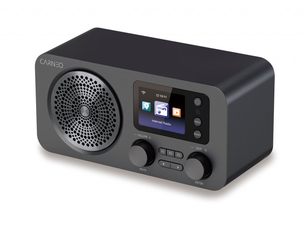 Internetové rádio CARNEO IR700. Nalaďte si více než 25 000 rozhlasových stanic z celého světa s křišťálově čistým zvukem v digitální kvalitě. IR700 je kompaktní internetové rádio, FM rádio a BT reproduktor, který se perfektně hodí kamkoli do vaší domácnosti a kombinuje prvotřídní reprodukci zvuku s klasickým elegantním designem, který zahrnuje barevný displej v živých barvách. Pomocí chytrého telefonu nebo tabletu můžete do rádia bezdrátově streamovat vlastní podcasty, internetová rádia nebo hudební sbírku přes Bluetooth. Barevný displej: Velký 2,4palcový barevný TFT displej zobrazuje informace a grafiku, jako jsou informace o programu, informace o skladbách, obaly alb, obrázky a počasí. Internetové rádio CARNEO IR700 má tři možnosti příjmu: internetové rádio, FM rádio DAB+ a reproduktorBluetooth. S internetovým rádiem můžeteproniknout do světa hudby ve špičkové kvalitě.Rock po celém světě - kdykoli a kdekoli chcete, vdigitálním nebo analogovém formátu, ať už jde osambu, pop nebo klasiku. Přehrávání externích datových médií přes USB typu A, např. USB flash disk, vstup AUX pro připojení přehrávače MP3. Flexibilní připojení k internetu: bezdrátově přes WLAN Díky dvoupásmové frekvenci 2,4 Ghz a 5 Ghz zařízení vždy vysílá a přijímá nejlepší dostupnou frekvenci. Vysoká úroveň uživatelské přívětivosti: ovládejte svá zařízení pohodlně z pohovky - prostřednictvím chytrého telefonu nebo tabletu s aplikací, dálkovým ovládáním nebo přímo na zařízení. Začněte den svou oblíbenou stanicí a dvěma paměťovými místy pro budík: lze nastavit oba časy buzení, zda má budík zvonit jen jednou, denně, ve všední dny nebo o víkendu. Pomocí odpovídajícího nástěnného držáku umístíte rádio přesně tam, kde k vám zvuk nejlépe doléhá. Prvotřídní příjem signálu díky teleskopické FM anténě, WIFI, ať jste kdekoli. Internetové rádio Wifi s 2,4'' barevným displejem Výstupní výkon: RMS 5 W Bluetooth 5.0 FM rádio, DAB+ S hodinami, režimem spánku, funkcí odložení a duálním budíkem Připojení: Bluetooth, Wifi Ovládání pomocí tlačítek nebo dálkového ovladače Podpora hudebního formátu portu USB: MP3 Barva: černá Verze Bluetooth: 5.0 Napájení: AC adaptér Frekvenční odezva: 120Hz ~ 20KHz SNR: ?70 dBA Zkreslení: ?1 % Reproduktor: ?3 palce/4? Rozměry: 210 mm * 100 mm * 105 mm Materiál: Plast ABSDodatočné parametre