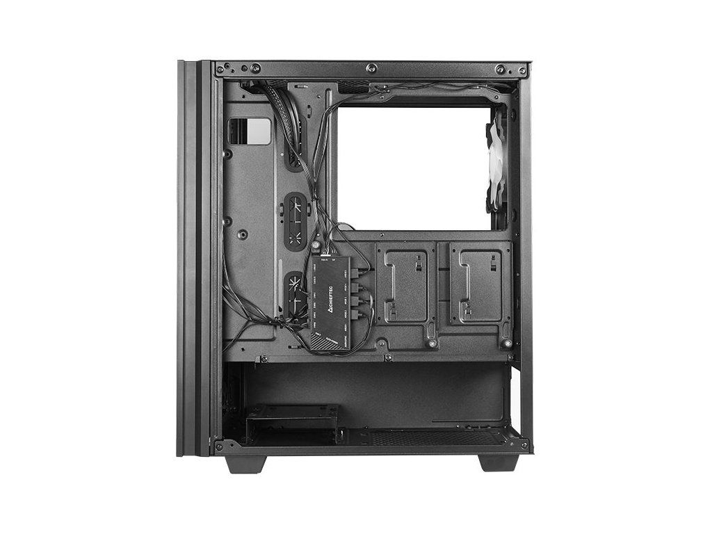 Počítačová skříň v provedení Middle tower nabízí dvě 3,5" a dvě 2,5" pozice pro pevné a SSD disky. Na horním panelu je umístěn jeden USB 3.0 port, jeden USB-C port, sluchátkový výstup a vstup pro mikrofon. Důmyslné řešení umožňuje pohodlné umístění až 360 mm dlouhého výměníku vodního chlazení na přední straně. Skříň je osazena čtyřmi 120 mm RGB podsvícenými ventilátory, které spolu s průhlednou bočnicí a perforovaným předním panelem zajišťují vytříbený design. Ve skříni je dostatek prostoru pro chladič CPU do výšky až 170 mm a grafickou kartu o délce až 320 mm. Skříň je dodávána bez zdroje.