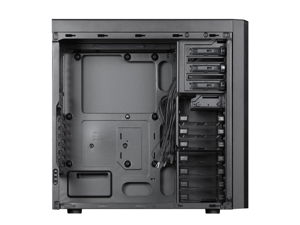 | Kompatibilita chladenia | Horná časť: 2x 120mm/140mm ventilátory alebo až 280mm radiátor (použitie 280mm radiátora blokuje prvý ODD disk) Predná časť: 2x 120mm ventilátory Zadná časť: 1x 120mm ventilátor Spodná časť: 1x 120mm alebo 140mm ventilátor (v závislosti od dĺžky PSU) |