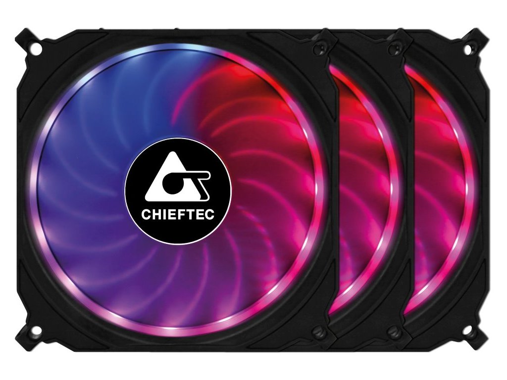 CHIEFTEC Tornado 3 ksSada tichých ventilátorů s měnitelným RGB podsvícením a speciálními lopatkami navrženými pro maximální průtok vzduchu. Každý ventilátor je vybaven 16 adresovatelnými LED diodami umožňujícími nastavení libovolného barevného podsvícení či světelných efektů. Díky dodávanému RGB ovladači lze osvětlení ovládat buď pomocí základní desky nebo zcela nezávisle přepnutím na příslušné záhlaví LED diody. Barevné režimy a rychlost ventilátoru lze také nastavit přímo pomocí funkčních tlačítek na desce regulátoru.