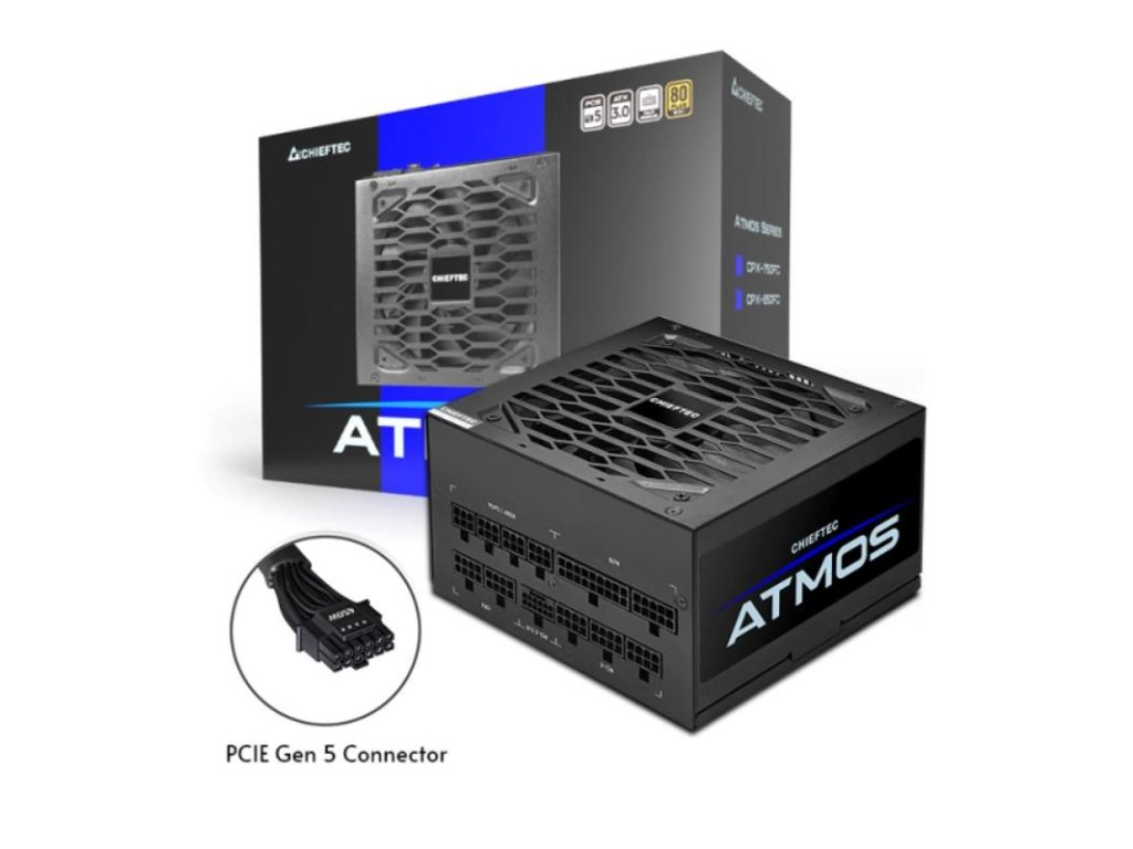 Séria CHIEFTEC ATMOS je postavená podľa štandardu Intel ATX 3.0 a podporuje PCIe GEN5 s certifikáciou účinnosti 80 PLUS GOLD, ktorá poskytuje výnimočný výkon až 850 W. Séria ATMOS sa vyznačuje najmodernejším technickým dizajnom, vrátane prevodníka SRC Full-bridge s technológiou DC-to-DC a japonských kondenzátorov, ktoré zaisťujú dlhú životnosť a stabilitu.