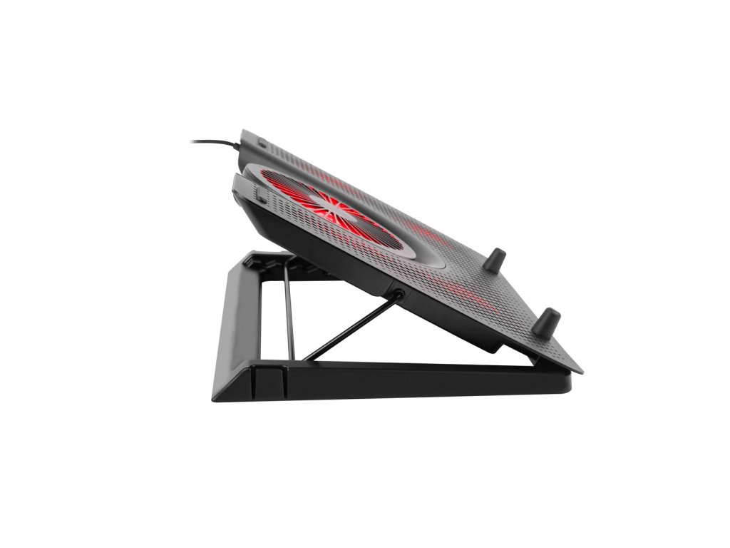 Genesis Oxid 550 je extrémně výkonná a odolná chladící podložka s hliníkovým tělem, určená pro notebooky s maximální úhlopříčkou 17,3'', která zvyšuje efektivitu chladícího systému notebooku a její promyšlená konstrukce nabízí řadu užitečných funkcí zvyšujících komfort používání. EFEKTIVNÍ CHLAZENÍ NOTEBOOKU Promyšlená konstrukce podložky Oxid 550 poskytne efektivní chlazení i tomu nejvýkonnějším hernímu notebooku. Důkazem toho je mohutné hliníkové tělo s rozměry 400x280mm, tloušťkou 2,2mm a mřížkou s velkými otvory pro optimální cirkulaci vzduchu. UNIKÁTNÍ CHLADÍCÍ SYSTÉM Chladicí systém podložky Oxid 550 je unikátní tím, že jeden velký ventilátor vhání studený vzduch do střední části notebooku a čtyři menší ventilátory umístěny na krajích odsávají teplý vzduch ven, což zajišťuje vynikající cirkulaci a vysokou efektivnost. NASTAVENÍ ÚHLU SKLONU V PĚTI ÚROVNÍCH Podložka navíc obsahuje možnost nastavení úhlu sklonu v pěti úrovních, díky čemuž si můžete notebook nastavit v té nejpohodlnější poloze a zvýšit tím nejen komfort používání, ale i efektivnost cirkulace vzduchu. Podložka obsahuje gumové nožičky, které zabraňují přesouvání po stole. PRAKTICKÝ DRŽÁK PRO TELEFON Chladící podložka Oxid 550 je dodatečně vybavena praktickým, odnímatelným držákem pro telefon, který můžete připevnit na pravou, nebo levou stranu a rozšířit tím její funkčnost. MODERNÍ DESIGN Podložka Oxid 550 je nejen efektivní, ale dobře vypadá, čehož důkazem je její moderní design a červené LED podsvícení, které ještě více zvýrazní váš herní styl a zkrášlí herní koutek. VLASTNOSTI • kompatibilní s notebooky o max. úhlopříčce 17,3'' • pět efektivních a tichých ventilátorů s červeným LED podsvícením • unikátní chladicí systém zajišťuje vynikající cirkulaci a vysokou efektivnost • pět úrovní nastavení úhlu sklonu • praktický, odnímatelný držák pro telefon • unikátní herní design • mohutné hliníkové tělo • tichý provoz SPECIFIKACE Počet ventilátorů: 5 Průměr ventilátorů: 1x 140 mm, 4x 60 mm Maximální rychlost otáček: 2800 RPM +/- 10% Maximální průtok vzduchu: 44,1 CFM Maximální úroveň hluku: 19 dB Rozhraní: USB 2.0 Rozbočovač USB: Ne Vstupní napětí: 5V DC Délka kabelu: 1 m Rozměry: 400x280x55mm Nastavení sklonu: Ano, v pěti úrovních Materiál: Hliník, ABS Hmotnost: 1050 gDodatočné parametre