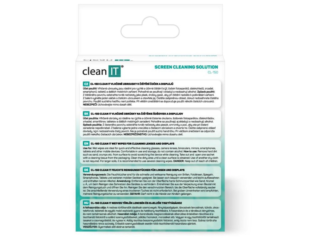 Udržujte svoje zariadenia v dokonalej čistote s profesionálnymi čistiacimi utierkami CLEAN IT! Tieto vysokokvalitné navlhčené utierky sú ideálnym riešením pre každodenné čistenie obrazoviek vašich mobilných telefónov, tabletov, notebookov, monitorov i okuliarov.