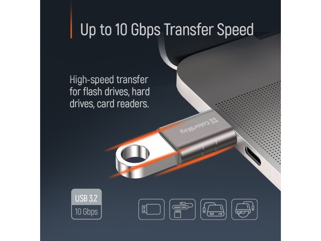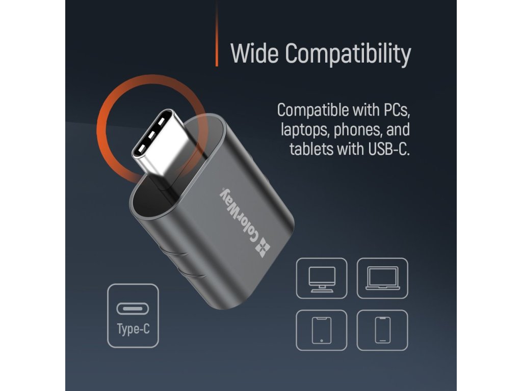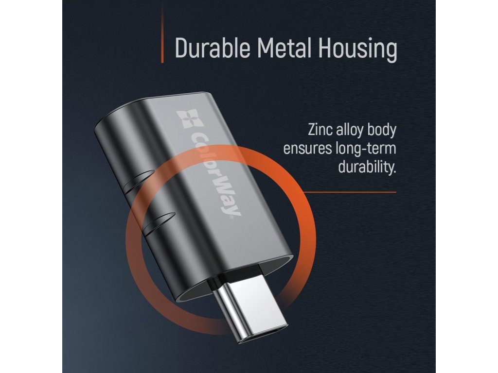 Tento univerzální adaptér od společnosti ColorWay představuje praktické řešení pro připojení tradičních USB zařízení k novým počítačům, laptopům, smartphonům a tabletům vybaveným pouze USB-C konektory. Díky kompaktní konstrukci z odolné zinkové slitiny zajišťuje spolehlivé připojení a dlouhou životnost.