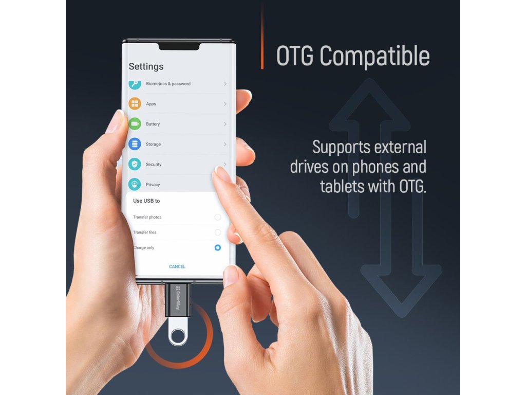 Díky podpoře OTG (On-The-Go) funkcí můžete k smartphonům a tabletům připojovat externí úložiště, klávesnice nebo myši pro rozšíření možností mobilních zařízení.