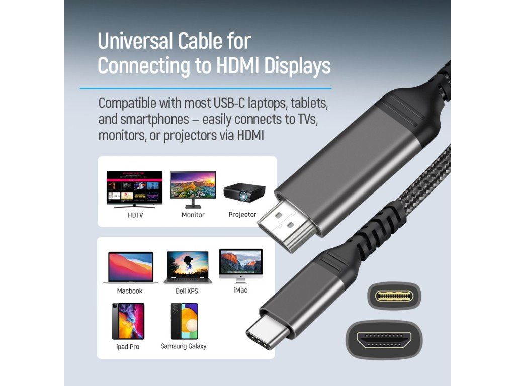 Tento kvalitní kabel umožňuje jednoduché propojení notebooků, tabletů nebo smartphonů s USB-C portem k monitorům, televizorům nebo projektorům vybaveným HDMI vstupem. Ideální řešení pro sledování filmů ve vysoké kvalitě, prezentace, práci nebo hraní her na velkém displeji.