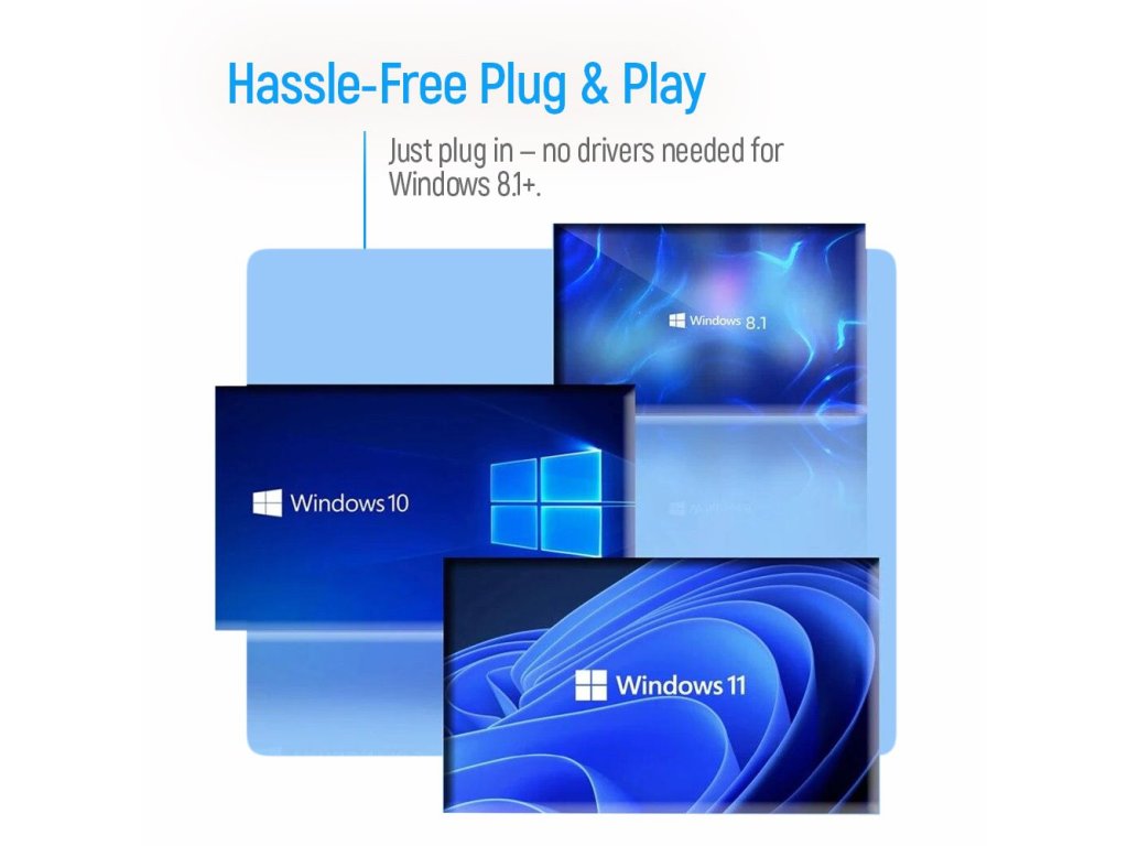 - Plug & Play instalace pro Windows 8.1 a novější bez potřeby ovladačů