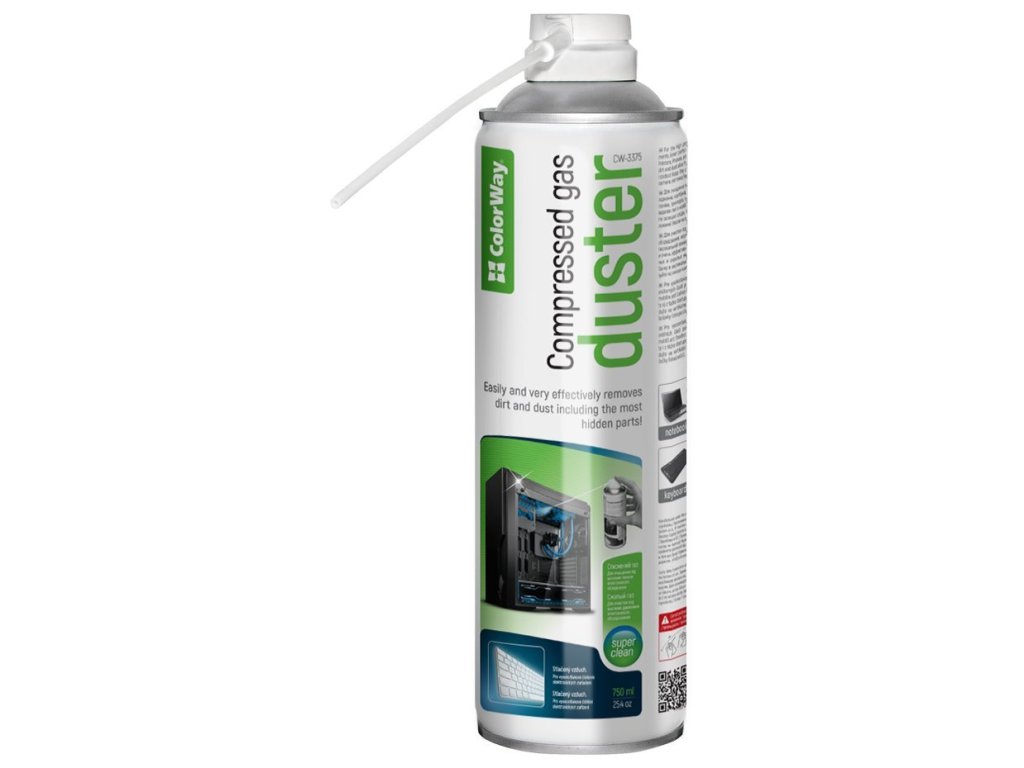 ColorWay stlačený plyn 750 mlStlačený plyn v kompaktní nádobě je navržený pro rychlé a efektivní čištění těžko dostupných míst. Neodstraňuje jen prach, ale také špínu a mikroskopické částice. Prodlužovací trubice se dostane do ostrých hran a štěrbin. Nezanechává žádné stopy po aplikaci. Tento univerzální čisticí pomocník je ideální na domácí nebo kancelářské použití. Produkt splňuje evropský standard kvality.