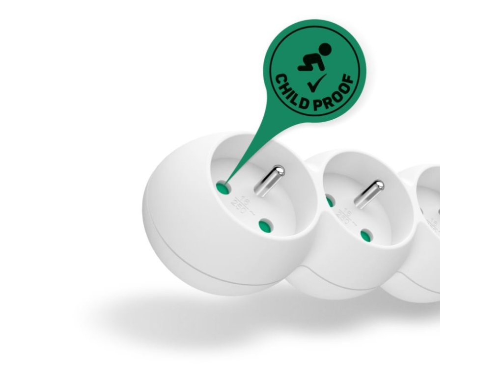 Detská ochrana všetkých zásuviek - zásuvky sa aktivujú len pri súčasnom zasunutí oboch kolíkov, čím zabránite deťom v zasúvaní jednotlivých predmetov