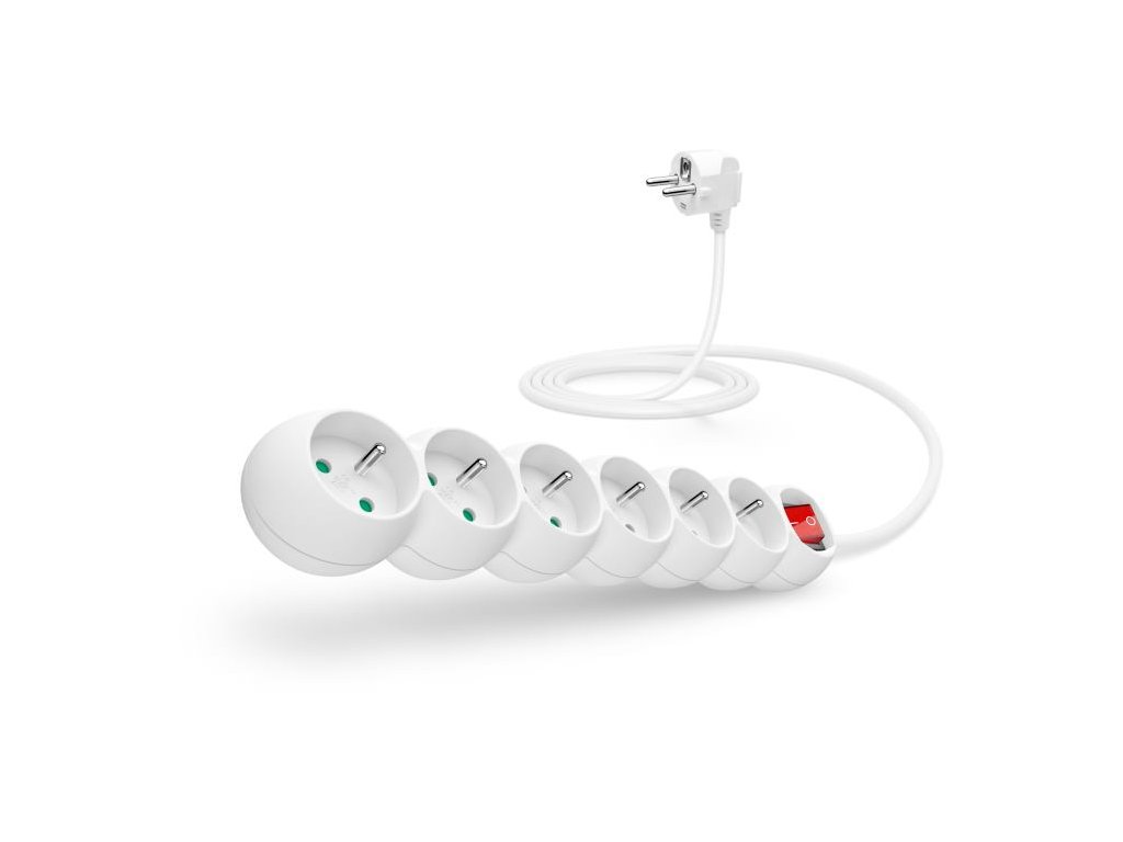 Predstavujeme vám inteligentné riešenie pre vašu domácnosť, dielňu či garáž - predlžovací prívod PowerRex so 6 zásuvkami a 2-metrovým káblom v elegantnom bielom prevedení.