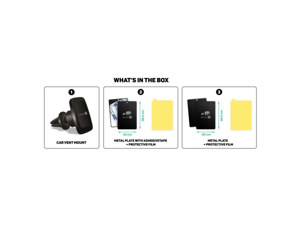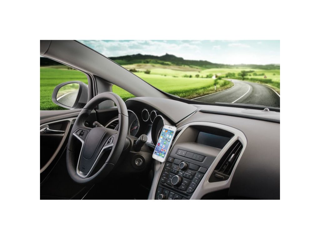Jednoduchá inštalácia: Stačí zasunúť držiak do vetracej mriežky a prilepiť kovovú doštičku na zadnú stranu telefónu. Následne je telefón zabezpečený jednoduchým priblížením k držiaku.