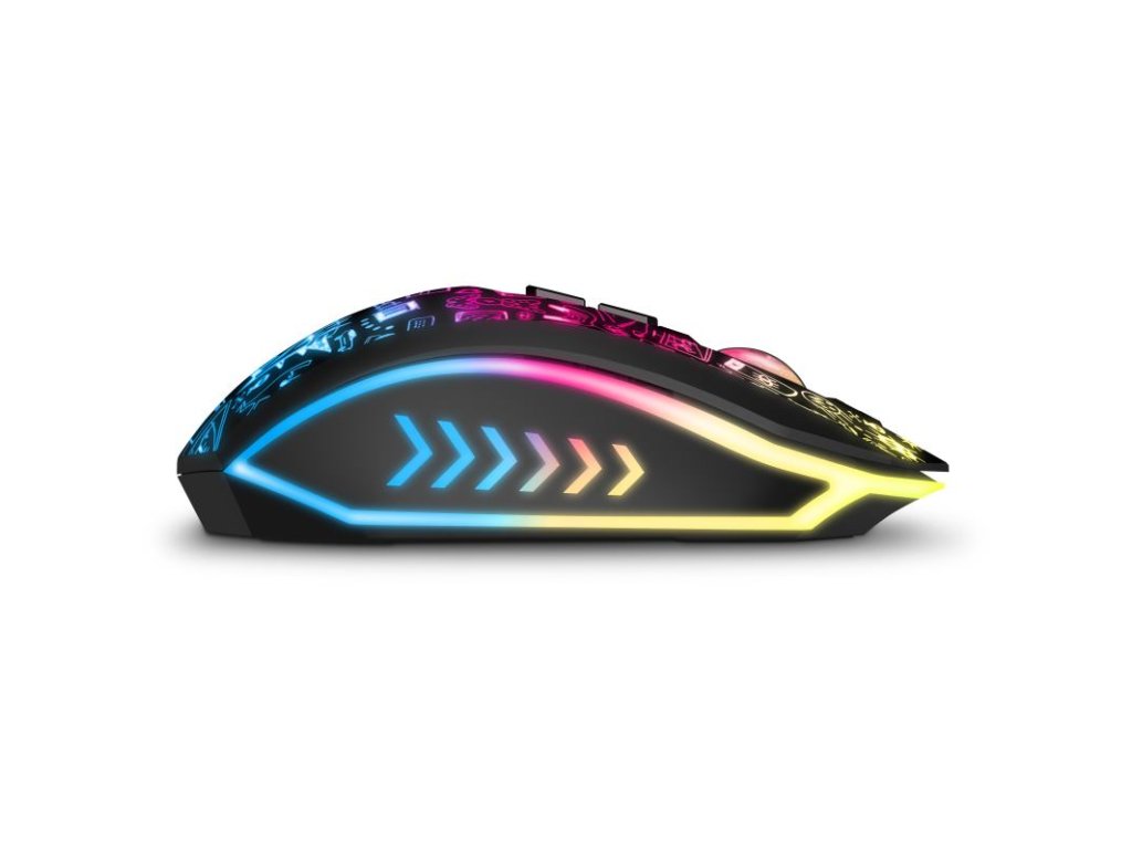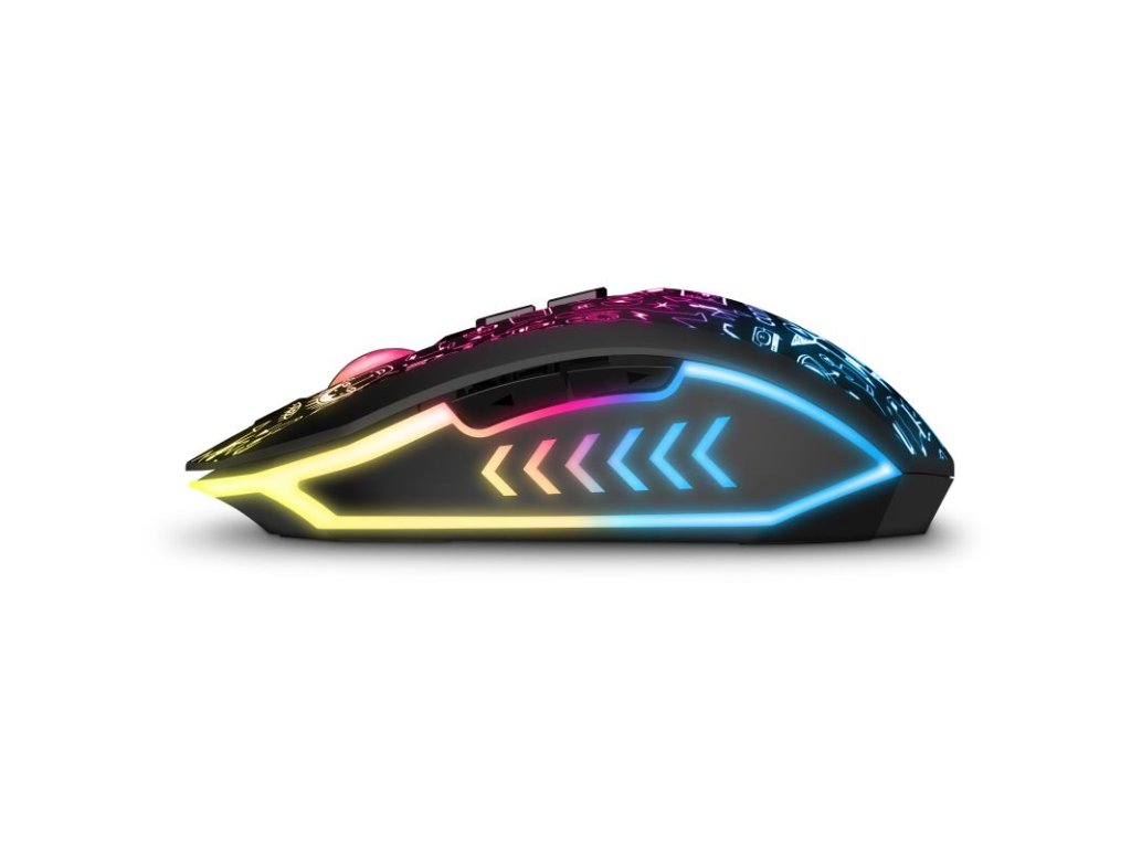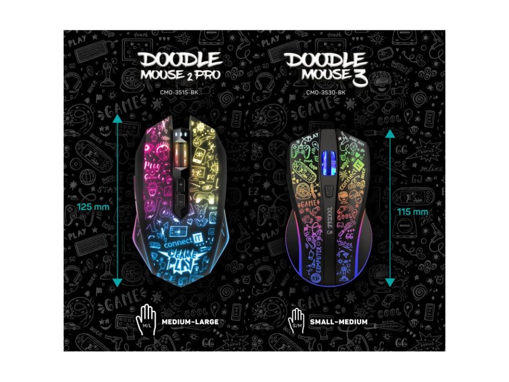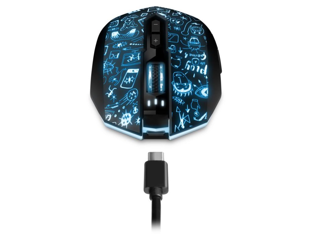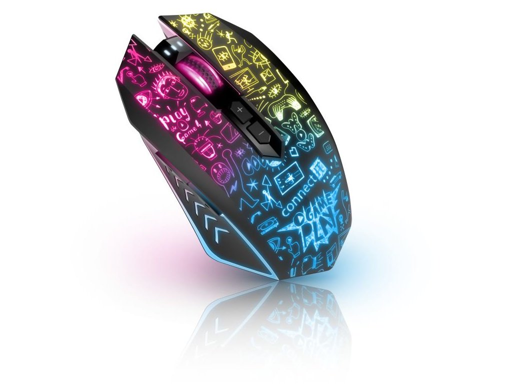 Profesionálna bezdrôtová herná myš DOODLE 2 PRO je navrhnutá pre hráčov počítačových hier, ktorí vyžadujú presnosť, rýchlosť a spoľahlivosť. Jej telo aj koliesko sú vybavené efektným podsvietením Rainbow (RNBW), ktoré dotvára hernú atmosféru.