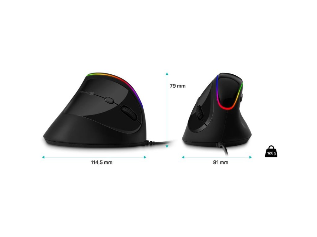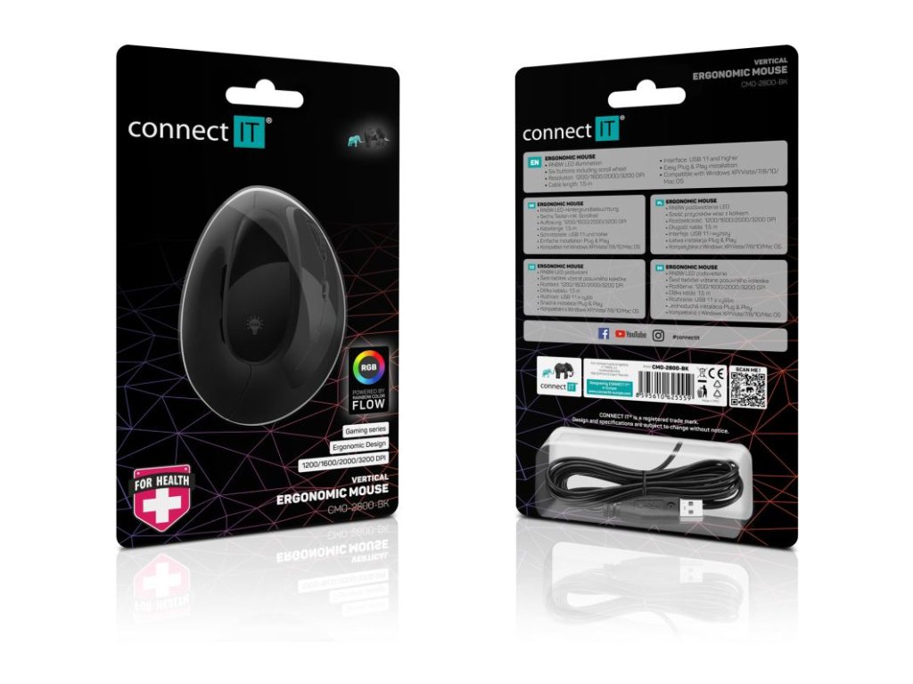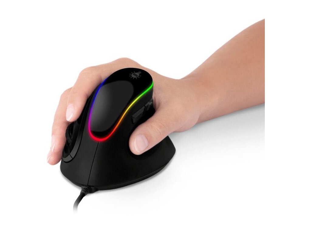 Herná vertikálna ergonomická optická drôtová myš CMO-2800-BK je navrhnutá špeciálne na prevenciu syndrómu karpálneho tunela a zníženie únavy pri dlhodobom používaní. Myš umožňuje prirodzenú polohu ruky a predlaktia, čím eliminuje neprirodzené kríženie kostí a šliach.