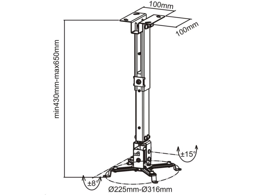 Všeobecný držiak na montáž projektora na strop - farba: sivá - naklápanie: ±30° - ľahká a rýchla montáž - vrátane skrutiek a hmoždiniek - vzdialenosť projektora od stropu nastaviteľná: 43-65 cm - nosnosť: 20 kgPopis produktu bol preložený pomocou umelej inteligencie a môže obsahovať nepresnosti.