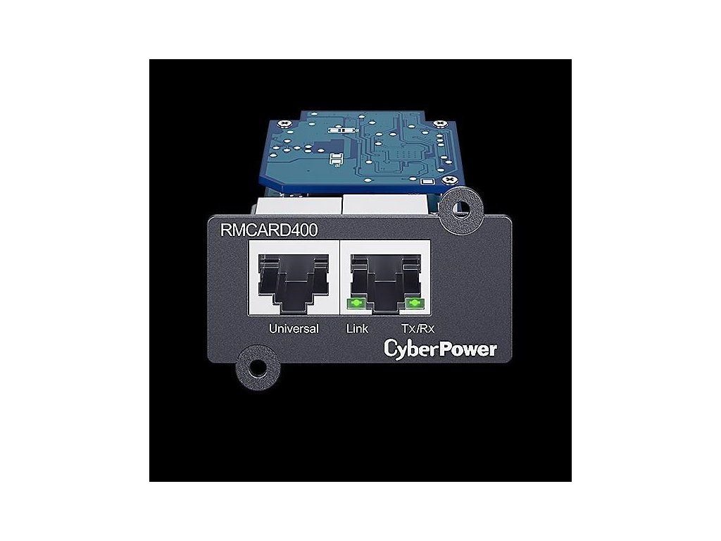CyberPower RMCARD400 je voliteľným doplnkom pre správu konkrétnej UPS rady CyberPower. Vložením karty do sieťového slotu SNMP / HTTP na UPS môžu používatelia vzdialene monitorovať a riadiť zariadenie v kancelárii, serverovni alebo dátovom centre prostredníctvom štandardných webových prehliadačov, systému správy siete (NMS) alebo rozhrania príkazového riadka (SSH a Telnet) v ich sieti. Môžu tiež vykonávať vzdialenú správu vrátane naplánovaného vypnutia, zapnutia a reštartu. Keď dôjde k problémom s napájaním, správca bude okamžite informovaný prostredníctvom e-mailu, SNMP a SMS správ. Použitím softvéru na automatické vypínanie zostávajú servery a pracovné stanice chránené pred stratou dát v dôsledku výpadku napájania. Záznam udalostí sleduje prevádzkovú históriu UPS. Vďaka možnosti výmeny batérií za prevádzky môže systém zostať zapnutý, aj keď servisný personál vykonáva údržbu alebo výmenu na mieste. Pomocou viacjazyčného rozhrania môžu používatelia zvoliť svoj preferovaný jazyk pre jednoduchú správu.