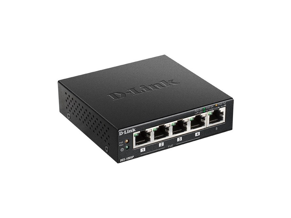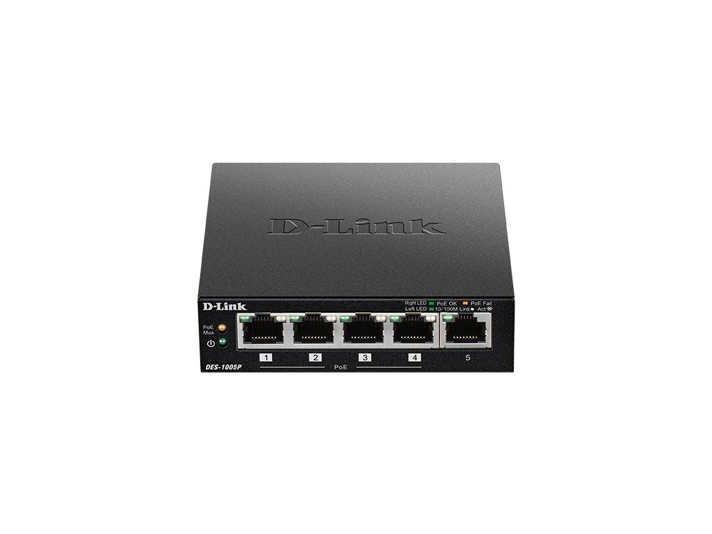 D-Link DES-1005P B1 5-portový 10/100 PoE stolový prepínač, 4x PoE+, 60W pre PoE DES-1005P/E