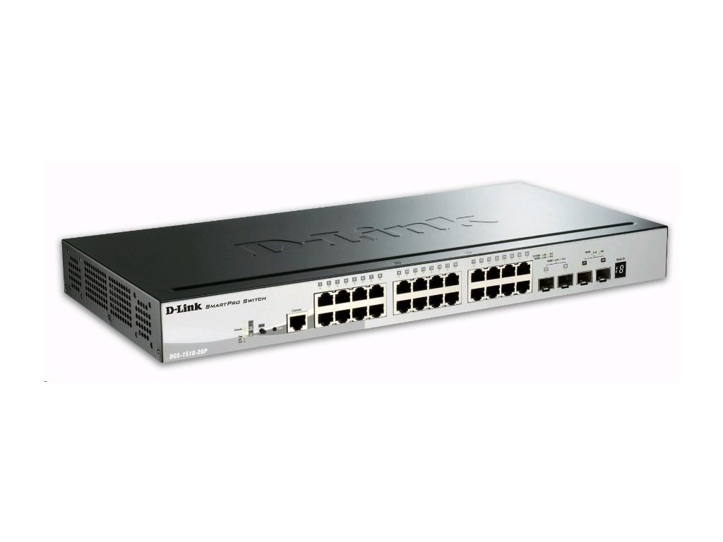 D-Link DGS-1510-28P 28-portový gigabitový stohovateľný SmartPro PoE switch, 24x gigabitový RJ45, 2x 10G SFP+ port, 2x S DGS-1510-28P/E