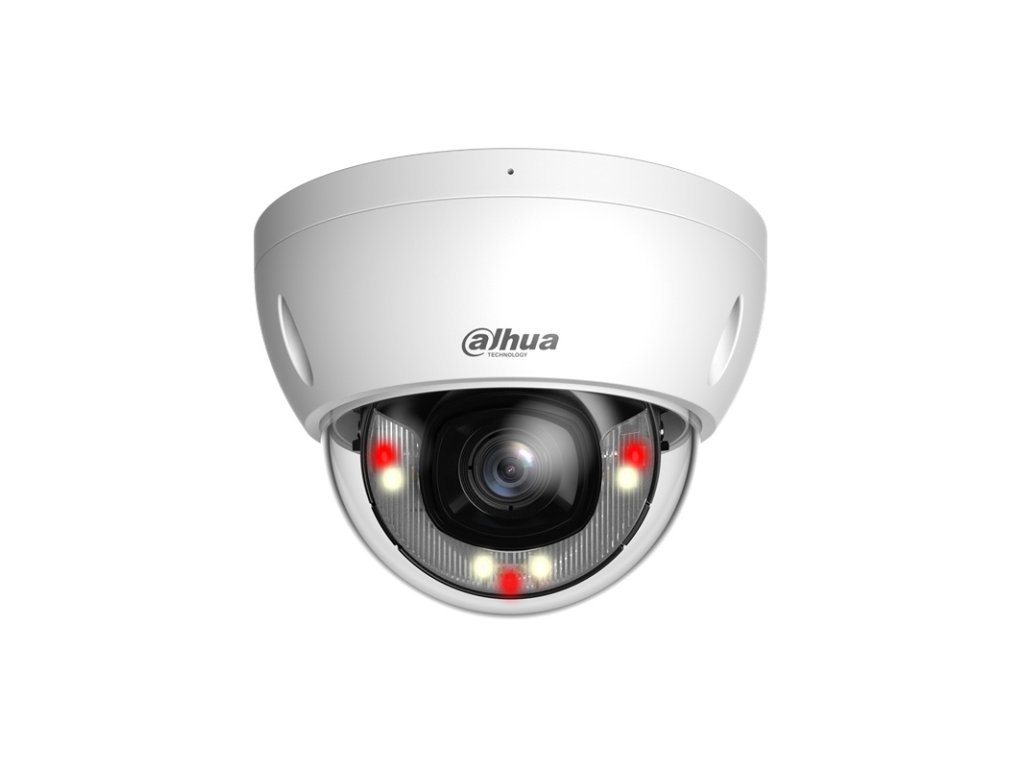 8 Mpx dome IP kamera, exteriérová, Day/Night, Smart IR LED a WL LED prísvit s dosvitom 30 m, 1 /2.7" 8 Megapixel CMOS, rozlíšenie 3840 x 2160 px @ 1-20 fps, 2688-1520 px @ 1-25/30 fps, citlivosť 0,008 lx @ F1.6, objektív 2,8 mm, uhol záberu H: 110°, V: 58°, D: 132°; AWB, BLC, HLC, WDR 120dB, 3DNR, kompresia H.265 / H.264 / H.264H / H.264B / MJPEG (Sub Stream), podpora Smart codec, ONVIF kompatibilné, RTMP; inteligentné funkcie: IVS (perimeter protection), Smart search, SMD; napájanie 12 V DC / PoE (802.3af), spotreba max.: 8,3 W, pracovná teplota od -40 °C do +60 °C, IP 67, IK10, rozmery 81,0 x ø109,9 mm, hmotnosť 0,35 kg