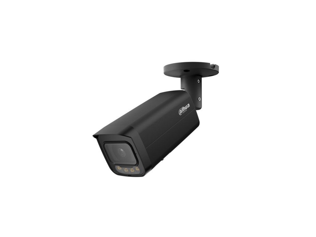 5 Mpx kompaktná IP kamera, exteriérová, Day/Night , IR 80 m, WL 60 m, 1/1.8" 5 Megapixel CMOS, rozlíšenie 2960 x 1668 px @ 1-25/30 fps, citlivosť 0,0009 lx @F1.6, objektív 3,6 mm, uhol záberu H: 90,3°, V: 47,8°, D: 108,6°; AWB, AI-ISP, BLC, HLC, WDR 120dB, AGC, ROI, 3DNR, SSA, Defog, LDC, Full Color; kompresia H.265 / H.264 / H.264H / H.264B / MJPEG (Sub Stream), RTMP, podpora Smart a AI Codekov, ONVIF kompatibilné; inteligentné funkcie: IVS (Perimeter Protection), Large AI model (Xinghan), SMD 4.0, AcuPick, Face Detection, People Counting, Queue Management, Heat Map, Video Metadata, Smart Search; RJ-45, zabudovaný mikrofón, micro SD karta max. 1 TB, alarm I/O 1/1, audio I/O 1/1, napájanie 12 V DC / PoE+ (802.3at) / ePoE, Dual Power Backup, spotreba max. 15,6 W, pracovná teplota od -40 °C do +60 °C, IP67, IK10 rozmery 238 x 90,7 x 90,7 mm, hmotnosť 0,835 kg, čierna verzia.
