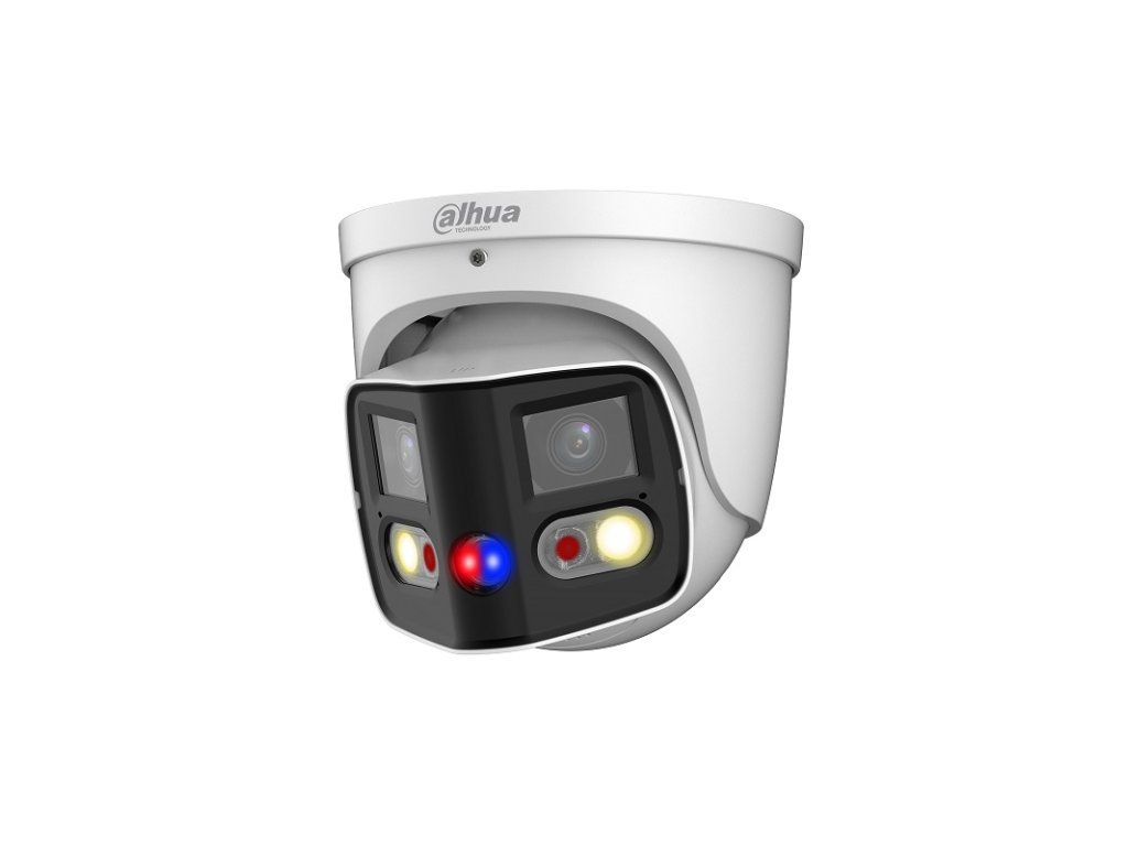 8 Mpx (2x 4 Mpx) dome panoramatická IP kamera, exteriérová, Day/Night, IR LED s dosvitom 25 m, viditeľný prísvit 20 m, Dual 1/2.7" 2x 4 Megapixel progresívne CMOS, rozlíšenie 4096 x 1860 px @ 1-20 fps, citlivosť 0,005 lx @ F1.4 (Color, 30 IRE), objektív 2,8 mm, uhol záberu H: 180°, V: 86°, AWB, BLC, HLC, WDR, 3DNR, AGC, ROI, Defog, Inteligentné funkcie: IVS (Perimeter Protection), SMD 4.0, Quick Pick, Smart Search, EPTZ, kompresia H.265 / H.264 / H.264H / H.264B / MJPEG (Sub Stream), podpora smart a AI codekov, ONVIF kompatibilné, slot na MicroSD kartu až 256 GB, vstavaný duaální mikrofón a reproduktor, RJ-45, Audio I/O 1/1, Alarm I/O 1/1, napájanie 12 V DC / PoE(802.3af), pracovná teplota od -40 °C do +60 °C, IP 67, rozmery ø122,0 x 135,2 mm, hmotnosť 0,99 kg
