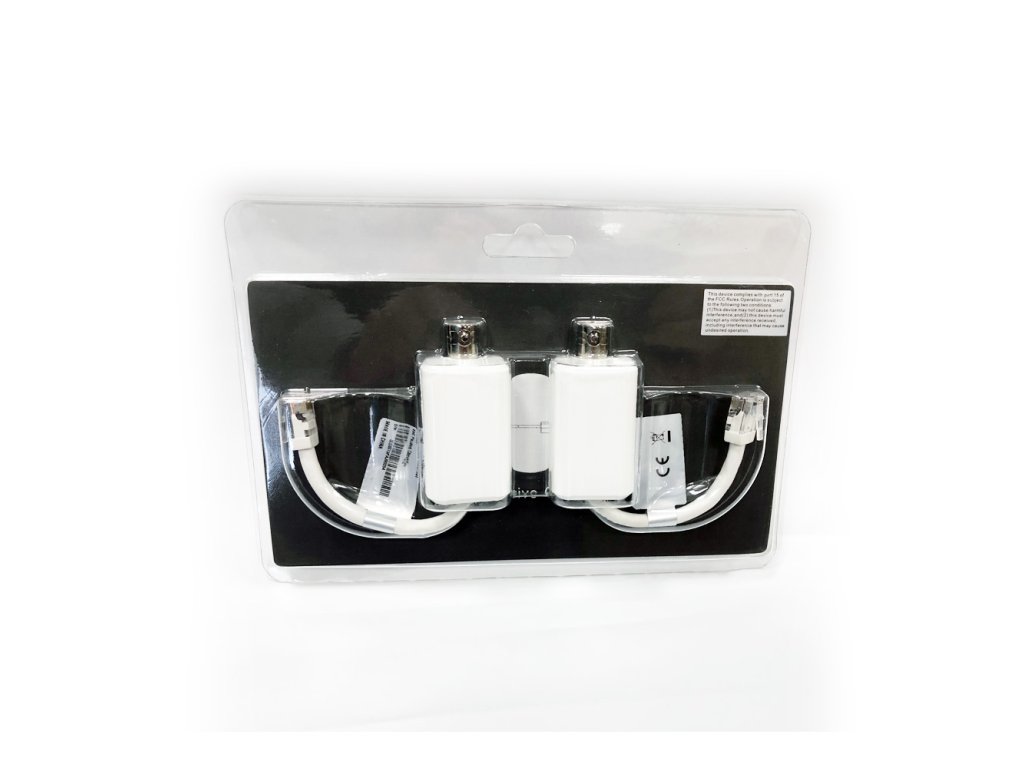 Sada pasívnych prevodníkov, 2x RJ-45, 2x BNC, podpora kábla RG59, vzdialenosť 400 m => napájanie + sieť 100 Mbps, vzdialenosť 1000 m => napájanie + sieť 10 Mbps, prevodník možno použiť len s ePoE prvkami, ochrana proti blesku 6 kV, pracovná teplota od -40 °C do +60 °C, hmotnosť 28 g, 56 x 27 x 21 mm