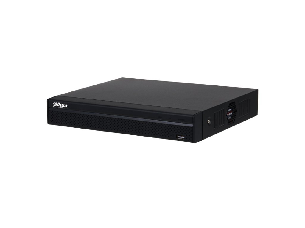 IP videorekordér 4 kanálový, kódovanie Smart H.265+ / H.265 / Smart H.264+ / H.264, 80 Mbps incoming, 80 Mbps recording, 60 Mbps outgoing, rozlíšenie kamery max. 12 Mpx, AI funkcie na NVR: SMD Plus 4 kanály, AI funkcie z kamier: Perimeter protection 4 kanály, SMD Plus 4 kanály, Face Detections 4 kanály, Face Recognition 4 kanály, 1x SATA max. 20 TB na 1 disk; Audio RCA I/O 1/1, 2x USB 2.0, 1x HDMI, 1x VGA, 1x 10/100 RJ-45 port, napájanie 12 V DC / 2 A, spotreba max. 10 W, pracovná teplota od -10 °C do +55 °C, hmotnosť 0,81 kg, rozmery 260,0 x 232,5 x 47,6 mm